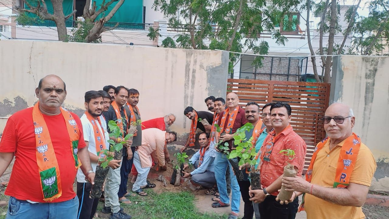 भारतीय जनता पार्टी रानी बाजार मंडल और “सत्ती माता शक्ति पीठ” मन्दिर के महंत पं. घनश्याम दास जी भोजक व महिला थाना हेड कांस्टेबल पितराम जी और बीकानेर शहर जिलाध्यक्ष सुमन जी छाजेड़ व अभियान के जिला संयोजक सत्यप्रकाश जी आचार्य एवं मंडल के संयोजक अरुण जी जैन के संयुक्त तत्वाधान में सत्ती माता मंदिर एवं महिला थाने में खेजड़ी,नीम,पीपल और तुलसी के पौधो का वन एवं पर्यावरण अभियान के तहत हरा भरा बीकानेर और सुनहरा राजस्थान के उद्देश्य के संकल्प से सघन वृक्षारोपण/पौधारोपण एवं वितरण के कार्यक्रम का आगाज- किया गया कार्यक्रम में उपस्थित मंडल संयोजक अरुण जी जैन,वह मंडल अध्यक्ष मुकेश सैनी, उपाध्यक्ष मुकेश बन,मंडल महामंत्री अरुण कुमार सोलंकी,जसवंत सिंह सोलंकी, मंत्री दिनेश भटनागर, सुरेश छिंपा, पूर्व जिला मंत्री प्रोमिला गौतम, पूर्व मंडल अध्यक्ष नरसिंह सेवग,पूर्व पार्षद जामनलाल गजरा,
