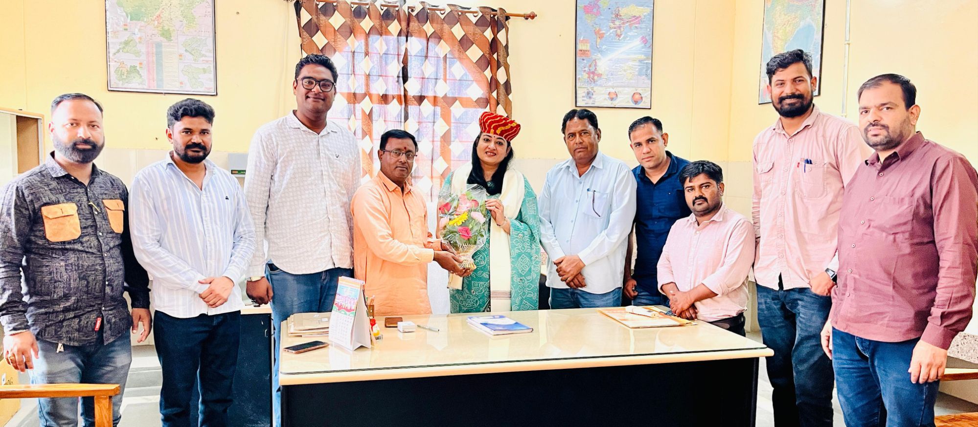 राजस्थानी मोट्यार परिषद, बीकानेर के प्रतिनिधिमंडल द्वारा महाराजा गंगा सिंह विश्वविद्यालय, बीकानेर में इतिहास विभाग की नवनियुक्त एसोसिएट प्रोफेसर व विभागाध्यक्ष डॉ. मेघना शर्मा का शॉल, साफा व पुष्पगुच्छ भेंट कर अभिनंदन किया गया। उल्लेखनीय है कि डॉ. मेघना द्वारा पूर्व में एसएफएस