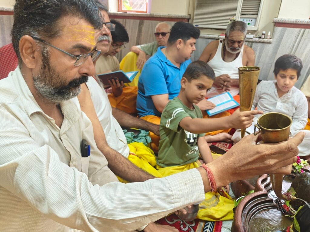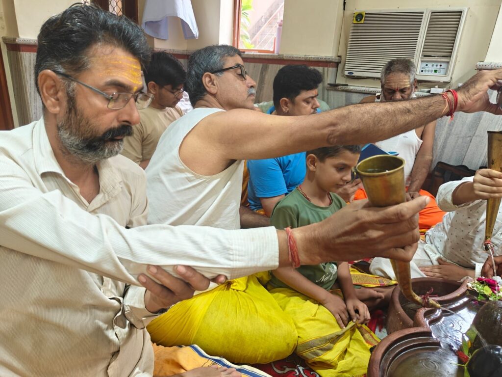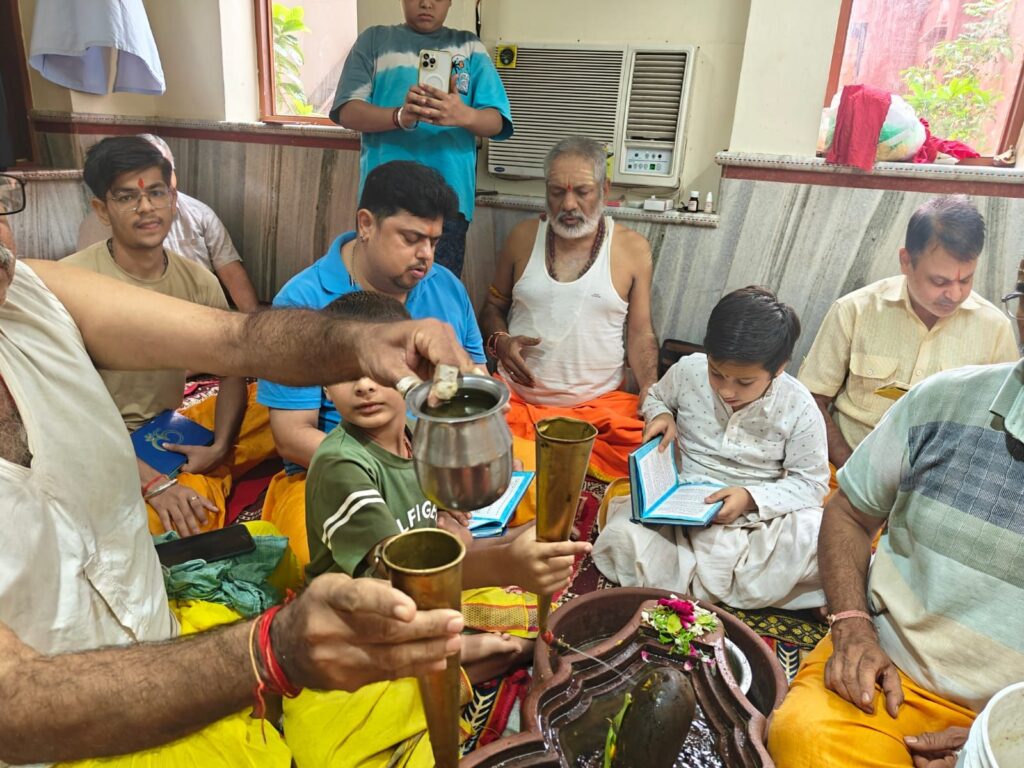 गोकुल सर्कल स्थित शिव शक्ति साधना पीठ में श्री ब्रह्मा कालेश्वर महादेव का अभिषेक किया जा रहा है पंडित संदीप वह बसंत के नेतृत्व में अभिषेक किया गया पीठ से जुड़े एडवोकेट मदन गोपाल व्यास ने बताया औषधि निश्चित व वह विजय ब्यूटी मिश्रित जल से अभिषेक किया गया अभिषेक में शंकर प्रहलाद राधा कृष्ण शुभकरण गणेश प्रहलाद जी वह पेंटर मनोज वी शिव शक्ति साधना पीठ से जुड़े भक्तगण उपस्थित रहे तत्पश्चात महादेव का श्रृंगार किया गया