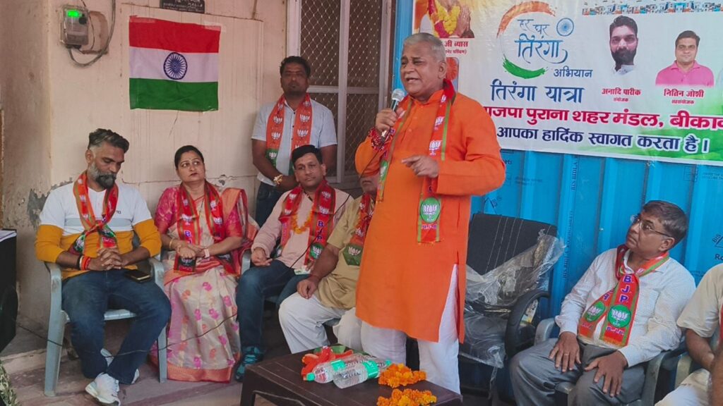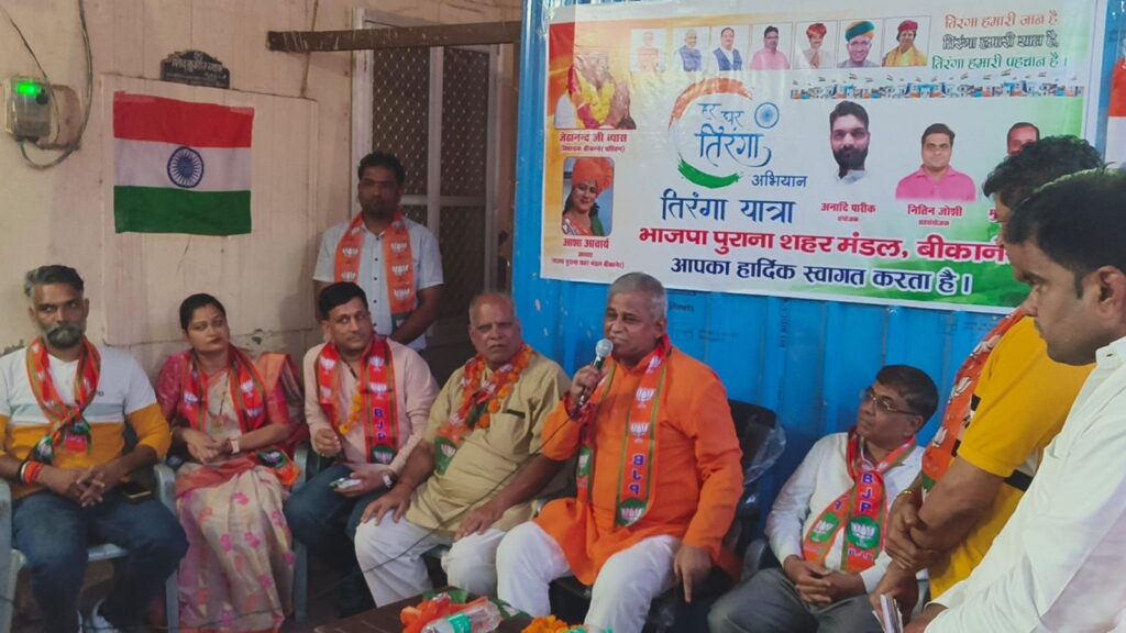 हर घर तिरंगा अभियान के तहत पुराना शहर मंडल द्वारा बीकानेर पश्चिम विधायक सेवा केंद्र में तिरंगा अभियान की कार्यशाला का आयोजन किया गया। जिसमें मुख्य वक्ता पश्चिम विधायक श्री जेठानंद व्यास एवं कार्यशाला के मंडल प्रभारी (जिला मंत्री) श्री रामचंद्र जी सोनी, जिला उपाध्यक्ष मोतीलाल जी हर्ष और जिला मंत्री तरुण स्वामी के साथ-साथ जिला व मंडल पदाधिकारी, सदस्य, पार्षदगण और भाजपा कार्यकर्ता उपस्थित रहे।