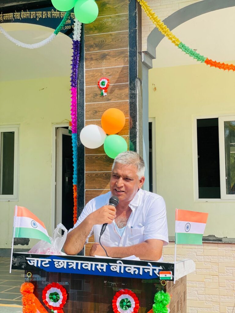 के कर कमलों द्वारा संपन्न करवाने के पश्चात छात्रों द्वारा परेड, पी.टी. एवं विभिन्न प्रकार की सांस्कृतिक प्रस्तुतियां दी गई। तत्पश्चात चेतराम थालोड़ अध्यक्ष,किसान छात्रावास ट्रस्ट, हजारीराम ज्याणी अध्यक्ष, जाट छात्रावास संचालन समिति,कॉ.हनुमान चौधरी वरिष्ठ उपाध्यक्ष,शिक्षाविद विक्रम बेनीवाल(सहकारिता सेवा)ने उपस्थित समाजबंधुओं एवं छात्रों को संबोधित किया तथा छात्रावास में प्रवेश के लिए छात्रों की लंबी वेटिंग लिस्ट को देखते हुए बिल्डिंग के विस्तार की आवश्यकता जताई गई तो इस पावन अवसर पर समाज के भामाशाह जेठाराम सियाग बरजांगसर, श्रीडूंगरगढ़,स्व.श्री गोपालराम सियाग के पुत्र तोलाराम सियाग,रामचंद्र सियाग बरजांगसर, श्रीडूंगरगढ़,भगवानराम जाखड़ बरसिंहसर,नथमल जाखड़ रीड़ी, श्रीडूंगरगढ़,हुकमाराम घणघस बिदासरिया,नोपाराम जाखड़ चेयरमैन उरमुल डेयरी पुत्र स्व.श्री हरजीराम जाखड़ पूर्व चेयरमैन उरमुल डेयरी, संसारदेसर,छतरगढ़, धनसिंह काजला टाटा मोटर्स हुसंगसर,बजरंग काकड़ चौधरी ट्रांसपोर्ट,सूरत, कुचोर अगुणी,डॉ.शंकरलाल जाखड़ वरिष्ठ कैंसर रोग विशेषज्ञ पीबीएम हॉस्पिटल,डॉ.सुरेंद्र बेनीवाल वरिष्ठ कैंसर रोग विशेषज्ञ पीबीएम हॉस्पिटल,डॉ.धर्मवीर सिहाग पीबीएम हॉस्पिटल,डॉ.रणजीत कासनिया कैंसर रोग विशेषज्ञ पीबीएम हॉस्पिटल, गांव राववाला,डॉ.कृष्णवीर सिंह चौधरी वरिष्ठ न्यूरो सर्जन जीवन रक्षा अस्पताल, गांव पलाना,धर्माराम गोरछिया नोरंगदेसर,परमाराम कूकणा नोरंगदेसर,भागीरथ जाखड़ नोरंगदेसर,दशरथ कूकणा नोरंगदेसर,बालूराम गाट नाथवाना, उदाराम गोदारा बरजांगसर, भागीरथ जांदू पुत्र बींझाराम जांदू कुचोर आथुनी,मोहनलाल तरड़ सेवानिवृत अध्यापक साधासर, करणाराम कड़वासरा एवं पन्नालाल भादू बीकानेर द्वारा 22 कमरे दिए गए। आज के कार्यक्रम में भीखाराम सांगवा अधीक्षक, किशन जांगू(हाकम जी), मनोहर लाल सियाग प्रधान, ठेकेदार पेमाराम सारण,भोमराज गाट(राजस्थान जाट महासभा),शंकर सारण(आदर्श जाट महासभा),जाट छात्रावास संचालन समिति के सुखराम बाना,एड.इमीचंद पूनिया, गिरधारी कूकणा,कोडाराम भादू, रामचंद्र सहू, तोलाराम सियाग, लक्ष्मण गोदारा,भंवर ढाका, शिव लाल गोदारा, एड.नंदराम कासनिया,भंवर सांगवा,श्रीमती सिंवरी चौधरी,रेवंत राम गोदारा,सुभाष माचरा, श्रवण बेनीवाल(शिक्षाविद),सोहन सियाग, गिरधारी लाल सियाग(Ex.En.), भींयाराम सियाग, हनुमान सियाग,श्रीराम सियाग,पूनमचंद सारण, सहीराम कसवां, मनमोहन रिंटोड, अर्जुन राम कड़वासरा, मूलचंद खीचड़,नानकजी बाना,बिशना राम सियाग, पूनमचन्द भांभू, मुखराम धतरवाल, सहीराम सांगवा, सुमेर सियाग, दिलीप गोदारा, प्रेम सारण, रोहित बाना, जीसुख गोदारा, प्रेम बुड़िया, महेश बाना, नारायण लेघा, हरचंद गोदारा, धर