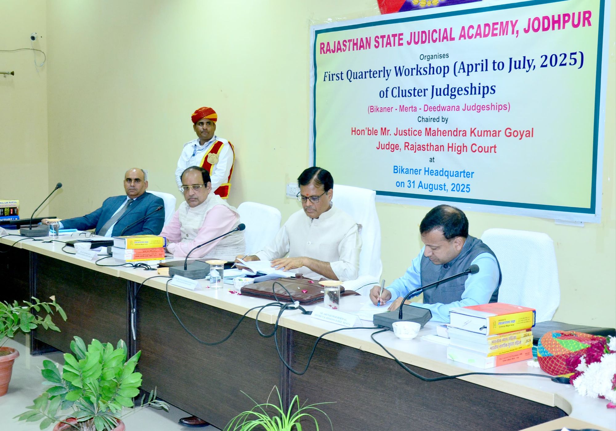 इसकी अध्यक्षता राजस्थान उच्च न्यायालय के न्यायाधिपति श्री महेंद्र कुमार गोयल ने की। सेमिनार में तीनों न्याय क्षेत्रों के न्यायिक अधिकारियों द्वारा नई अपराधिक विधियों सहित राजस्थान कोर्ट फीस एवं वाद मूल्यांकन अधिनियम, नेगोशिएबल इंस्ट्रूमेट्स एक्ट तथा विनिर्दिष्ट अनुतोष अधिनियम में विहित विभिन्न विषयों जैसे कोर्ट फीस, चेक, जमानत, निषेधाज्ञा तथा दस्तावेज के प्रस्तुतीकरण से संबंधित विभिन्न प्रावधानों पर चर्चा की। न्यायाधिपति द्वारा न्यायिक कार्यवाहियों के दौरान प्रकरण से संबंधित विधिक प्रावधान और नवीनतम न्यायिक निर्णयों को ध्यान में रखते हुए न्यायिक कार्यवाहियां निष्पादित किए जाने से जुड़ा मार्गदर्शन दिया।