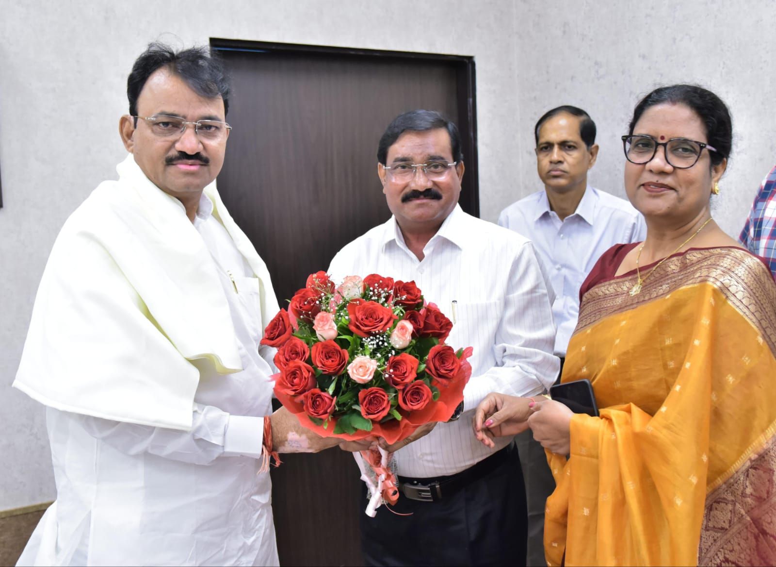 जयपुर, 11सितम्बर, वर्धमान महावीर खुला विश्वविद्यालय-कोटा के नवनियुक्त कुलगुरु प्रो. बीएल वर्मा ने आज जयपुर में उप मुख्यमंत्री एवं उच्च एवं तकनीकी शिक्षा मंत्री डॉ. प्रेमचंद बैरवा से मुलाकात की । डॉ. प्रेमचंद बैरवा से चर्चा के दौरान कुलगुरू प्रो वर्मा ने विश्वविद्यालय की मुक्त शिक्षा के क्षेत्र में संचालित विभिन्न गतिविधियों,अकादमिक पाठ्यक्रमों, शैक्षणिक प्रगति, कार्यक्रमों-कार्य योजनाओं एवं अनुसंधान प्रगति से अवगत करवाया। नवनियुक्त कुलगुरू प्रो.बीएल वर्मा की उप मुख्यमंत्री डॉ. प्रेमचंद बैरवा से यह प्रथम शिष्टाचार भेटवार्ता थी।
