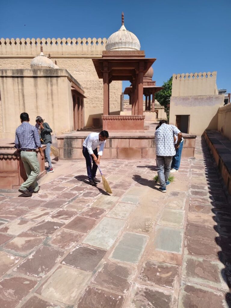 बीकानेर, 24 सितंबर। सेवा पर्व पखवाड़े के तहत पुरातत्व एवं संग्रहालय विभाग के गंगा राजकीय संग्रहालय का सामूहिक स्वच्छता अभियान बुधवार को भी जारी रहा। सामूहिक स्वच्छता अभियान के तहत संग्रहालय के कार्मिकों ने बीकाजी की टेकरी पर साफ-सफाई की। इस अवसर पर संग्रहालयाध्यक्ष श्री राकेश शर्मा के साथ संग्रहालय कार्मिक श्री राकेश जयपाल, श्री छगन लाल, श्री भवंरसिंह, भूतपूर्व सैनिक श्री जयराम ने बीकाजी के समाधि स्थल अन्य छतरियों की साफ-सफाई की। परिसर में उगे हुए झाड़-झंखाड़ हटाए गए। श्री शर्मा ने आम नागरिकों से स्मारकों की सफाई एवं उनके संरक्षण के प्रति जागरूकता का आह्वान किया। साथ ही नगर निगम के सहयोग से सफाई का नियमित अभियान चलाए जाने की जानकारी दी।