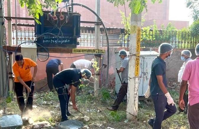 वर्षों से उपेक्षित पड़ा बिजली ट्रांसफॉर्मर क्षेत्र पूरी तरह साफ किया गया। यह कार्य जोखिम भरा था क्योंकि ट्रांसफॉर्मर चालू था, पर आयकर विभाग के कर्मियों ने बड़ी जिम्मेदारी और सावधानी से इसे अंजाम दिया – जैसे वे कर चोरी पकड़ने में करते हैं।