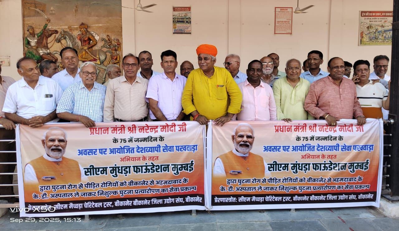 बीकानेर, 29 सितम्बर। प्रधानमंत्री नरेन्द्र मोदी के जन्मदिवस के अवसर पर आयोजित किए जा रहे सेवा पखवाड़े के तहत सोमवार को सीएम मूंधड़ा फाउण्डेशन मुंबई द्वारा बीकानेर जिले के 26 वृद्धजनों को घुटना प्रत्यारोपण के लिए अहमदाबाद के लिए रवाना किया गया।