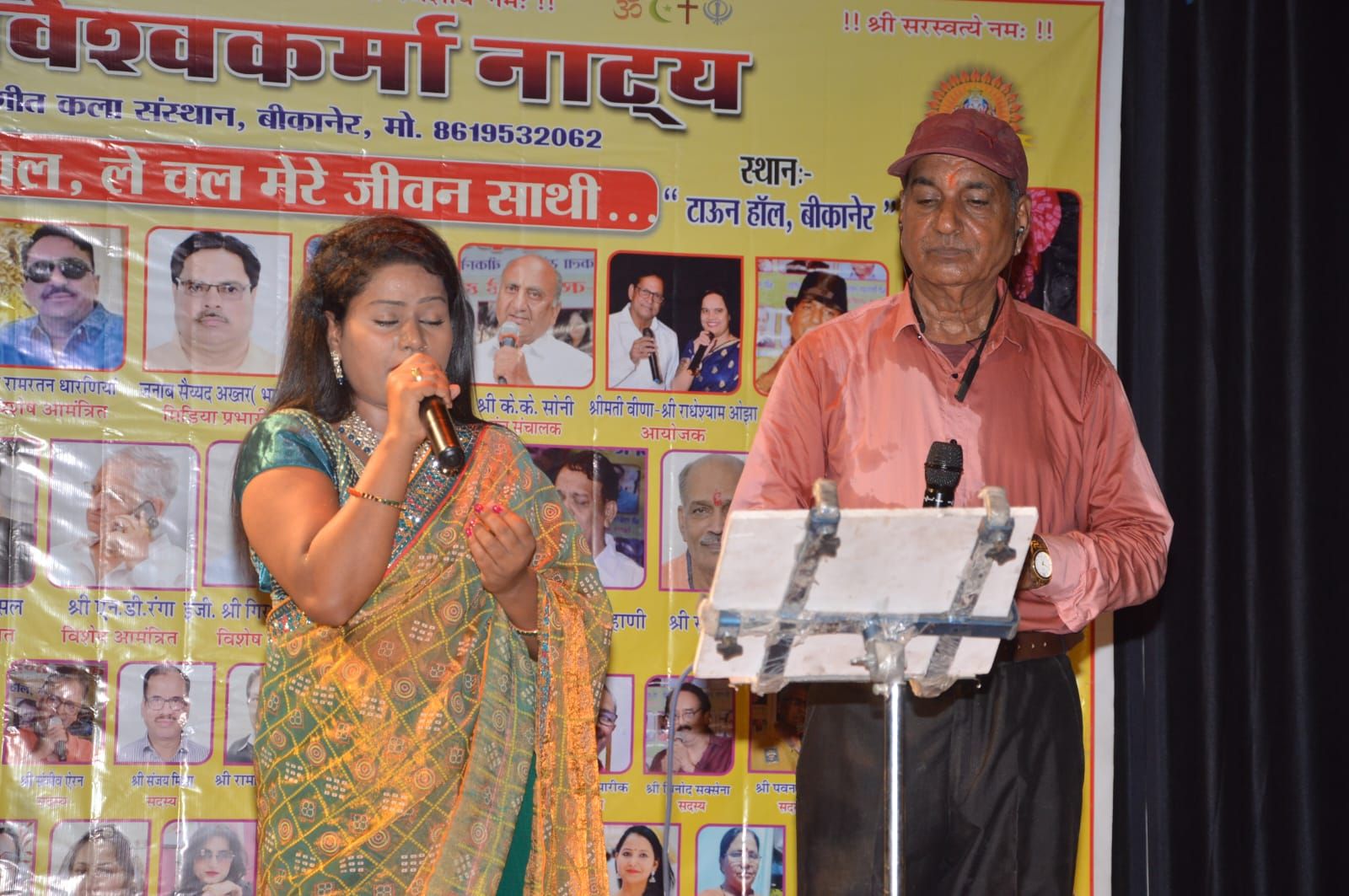 बीकानेर। श्री विश्वकर्मा नाट्य संगीत कला संस्थान द्वारा स्थानीय टाउन हॉल में आयोजित “ले चल जीवन साथी” गीत संगीत संध्या में दिल्ली की कलाकार पूजा सिंह के साथ डुएट सोंग्स में स्थानीय गायक कलाकार मेघराज नागल, नारायण बिहाणी, राधेश्याम ओझा, रामकिशोर यादव, सुनील शादी, दिव्यांशु अग्रवाल, इं.कमल कांत सोनी, संजीव एरन सहित अन्य कलाकारों ने अपनी आवाजों से शानदार कार्यक्रम को प्रस्तुत किया, जिससे यह पूजा के साथ स्थानीय कलाकारों की स्वर- लहरियों से गूंज उठा। कार्यक्रम आयोजक एवं संस्था अध्यक्ष मेघराज नागल ने सोमवार को जानकारी देते हुए बताया कि “ले चल जीवन साथी ” गीत संगीत संध्या कार्यक्रम का रविवार को आयोजन किया गया। जिसमें दिल्ली की गायिका पूजा सिंह के साथ मेरे अलावा एक दर्जन से ज्यादा संस्था से जुड़े हुए कलाकारों को हिंदी