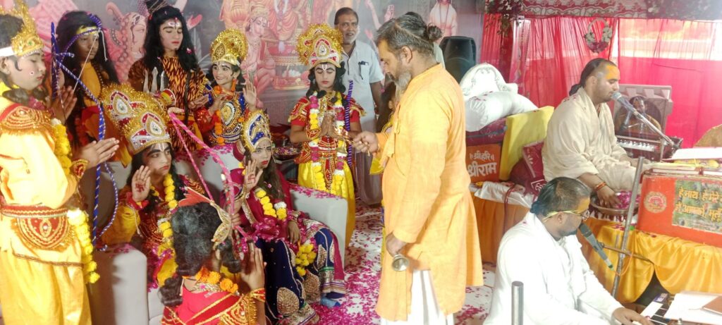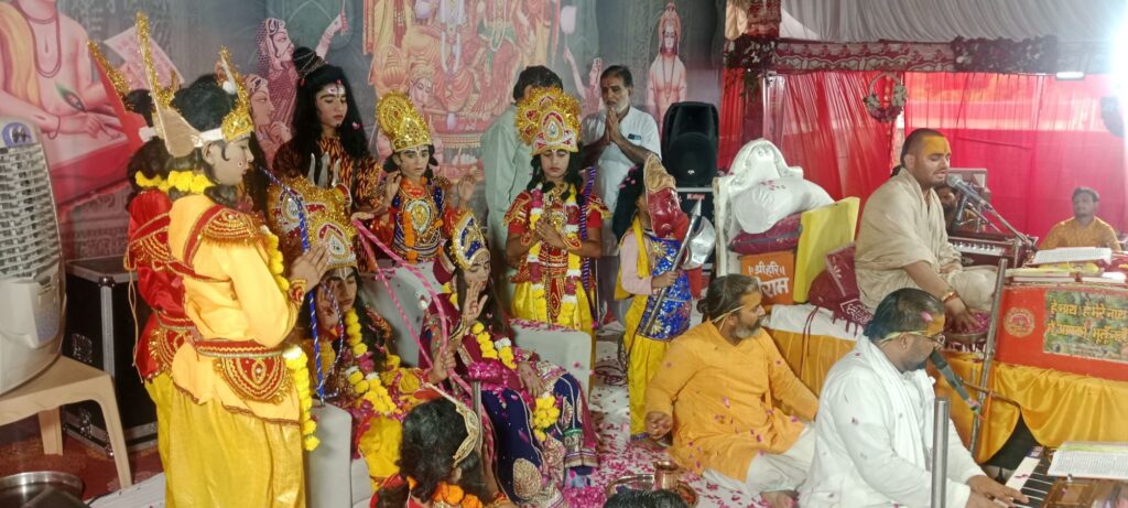 नोखा यहाँ श्री कृष्ण मंदिर परिसर में 22 से 30 सितम्बर 2025 तक दो पारियों में विद्धवान पंडित गोपीरामजी महाराज के सानिध्य में आयोजित 9 दिवसीय श्रीरामचरित मानस के सामुहिक पाठ मंगलवार को सम्पन्न हो गया। कथा व्यास जी द्वारा अपनी अमृत मयी मधुर वाणी में किया गया पाठ व इससे पूर्व की गई श्रीमद भागवत कथा को लेकर धर्मप्रेमी श्रद्धालू भाव विभोर व मंत्रमुग्ध हो गये। और श्रीराम कथा सुनने की कामना करने लगे पाठ के अंतिम दिन मंगलवार को नोखा के झांकी कलाकार भवानी परत्ताणी द्वारा श्रीराम दरबार की अति सुन्दर आकर्सित मनमोहक संजीव झांकी की प्रस्तुती दी जिसे देख कर कथा व्यास गोपीराम महाराज सहित बड़ी तादाद में उपस्थित नर-नारी दर्शकश्रोता मंत्र मुग्ध हो गये झाखी में श्रीराम, लक्ष्मन, भरत, शत्रुधन, सीता, गणेश, शिव, विष्णु, वशिष्ठ को देखते ही सभी हर्षित हो गये और हाथ जोड़ रहे थे। कथा व्यासजी ने पुष्प वर्षा करते हुए हुए नमन किया। इस दौरान पांडाल में उत्साह मनाया गया और माहोल धर्ममय हो गया। महाराज श्री ने 15 से 30 सितम्बर तक 16 दिन आयोजित दोनो कार्यक्रम के आयोजनो, व्यवस्थाओं, कार्यकर्ताओं और धर्म प्रेमी श्रोताओ । की प्रशंसा की और आशिर्वाद दिया। सतसंग समिती नोखा की ओर से पूर्व पालिकाध्यक्ष रामकृष्ण खत्री ने भागवत कथा व रामचरित पाठ दोनो आभोजनों में धर्म प्रेमी श्रोताओं, कार्यकर्ताओ, मीडिया कर्मियो, मंदिर पुजारी, व्यवस्ताओं को सुचारु बनाये रखने वालों, माईक, फोटो ग्राफर आदि सभी का आभार जताया। खत्री ने महाराज का गर्मजोशी से अपनी वाणी में प्रशंसा करते हुए उनका समय-समय पर आभोजन की अनुमति देते रहने के लिए आभार जताया।