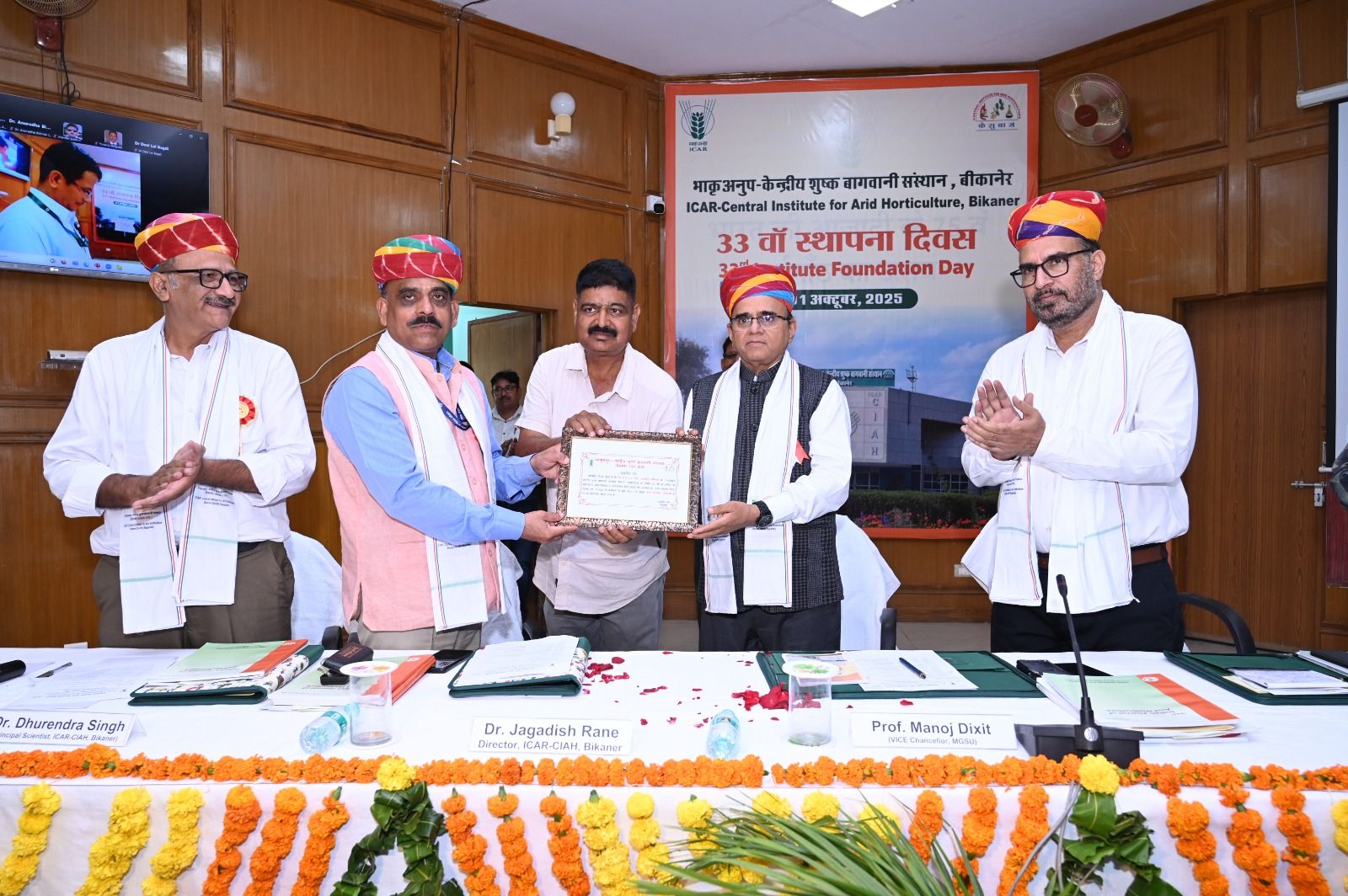 बीकानेर 1 अक्टूबर 2025 भा.कृ.अनु.प. केन्द्रीय शुष्क बागवानी संस्थान का 33वां स्थापना दिवस 01.10.2025 को आयोजित किया गया। इस सुअवसर पर संस्थान के