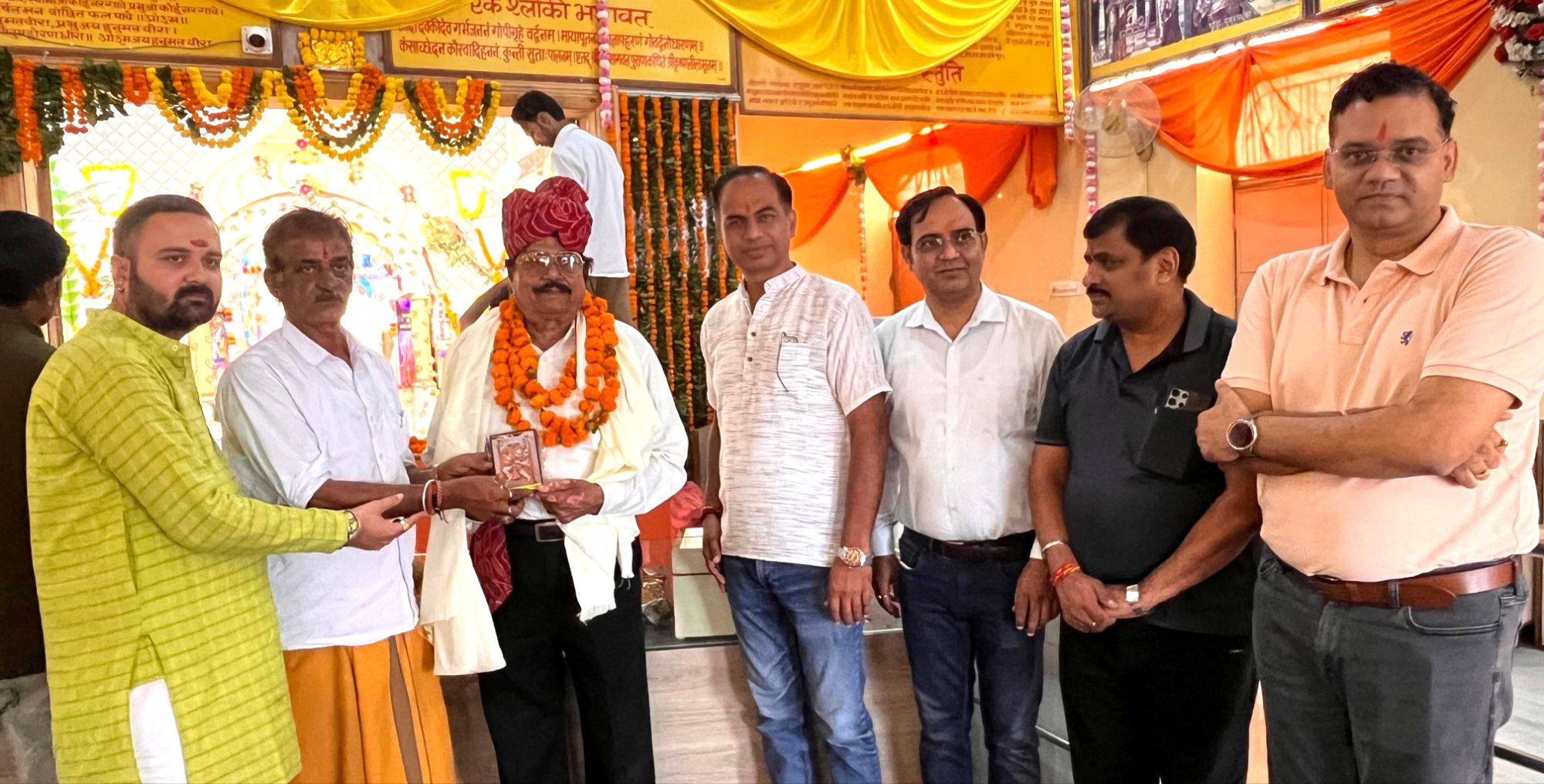 बीकानेर। श्री बजरंग धोरा धाम में शरद पूर्णिमा के अवसर पर मंदिर के प्रधान पुजारी बृजमोहन दाधीच द्वारा महाआरती की गई। इस अवसर पर श्री बजरंग धोरा विकास समिति के अध्यक्ष आशीष दाधीच ने बताया कि मंदिर के सेवादार और सामाजिक सरोकार कार्यों में हमेशा सक्रिय रहने वाले बैंक कर्मचारी नेता सुनील दत्त नागल को मंदिर का प्रतीक चिन्ह मोमेंटो, शॉल एवं माला पहनाकर इनका सम्मान किया गया। इस अवसर पं. श्रवण दाधीच,अनुज दाधीच, मनमोहन दाधीच मौजूद रहे। इस अवसर पर पंडित आशीष दाधीच ने मानव सेवा को ही सर्वोपरि बताया।