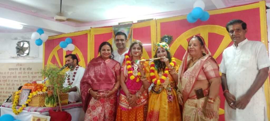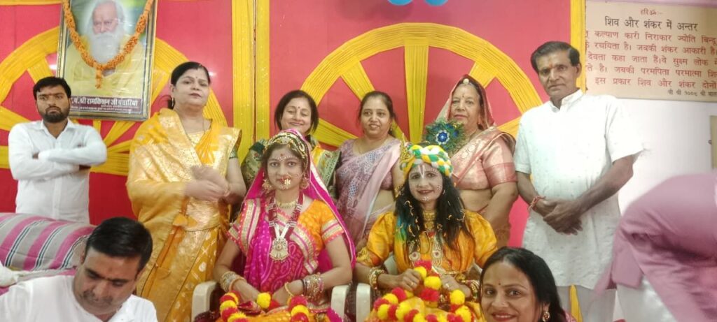 नोखा। अर्केश्वर महादेव मंदिर में आयोजित हो रही भागवत कथा में छटे दिन गुरुवार को कृष्ण के रूप में लक्ष्मी तोषनीवाल माँ और रुक्मणि के रूप में मनिशा तोषनीवाल (बेटी) दोनो मां बेटी का विवाह हुआ जो सचमुच नहीं बल्कि भगवत काथा में कृष्ण सुखमनी में विवाह प्रसँग को सार्थक बनाने के लिये किया गया है।