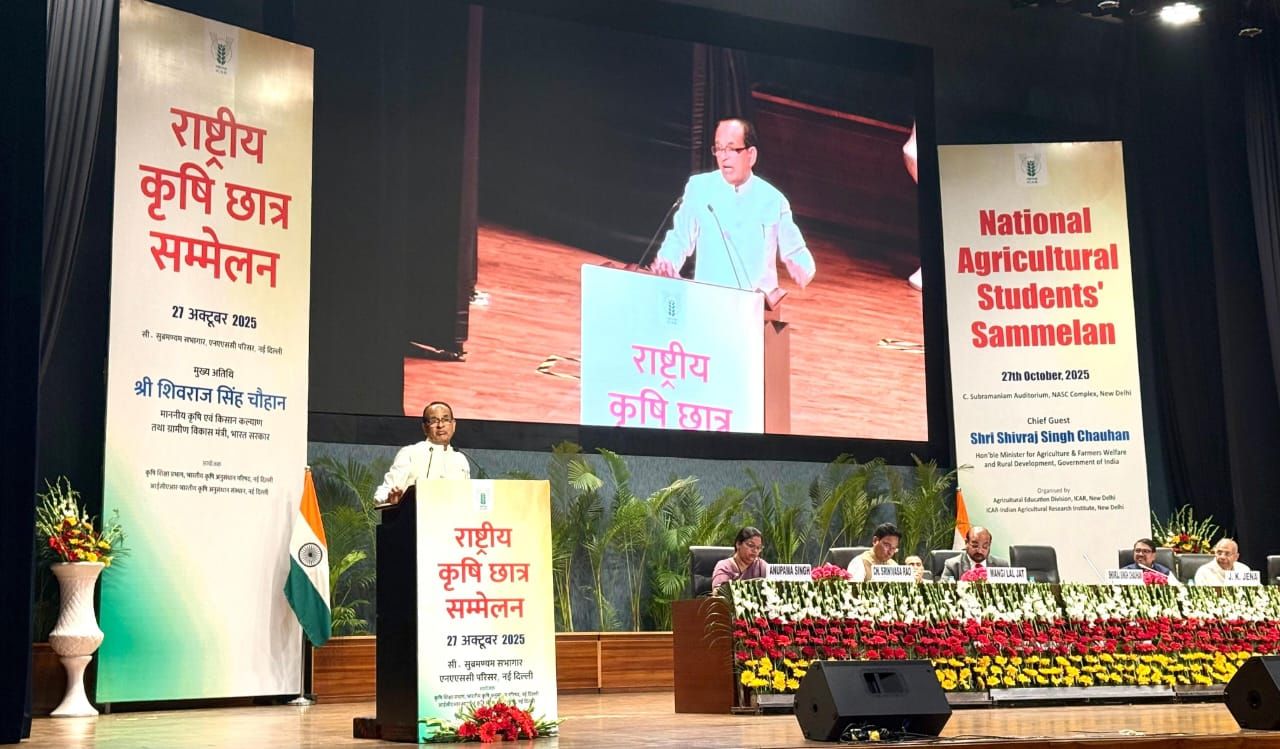 (आई.सी.ए.आर.), नई दिल्ली एवं आई.सी.ए.आर.-भारतीय कृषि अनुसंधान संस्थान, नई दिल्ली द्वारा आयोजित “राष्ट्रीय कृषि छात्र सम्मेलन” का आयोजन 27 अक्टूबर, 2025 को हाइब्रिड मोड में किया गया। इस अवसर पर भारत सरकार के कृषि एवं किसान कल्याण मंत्री, श्री शिवराज सिंह चौहान जी ने देशभर के कृषि विश्वविद्यालयों के विद्यार्थियों को संबोधित किया। कॉलेज ऑफ डेयरी साइंस एंड टेक्नोलॉजी (सी.डी.एस.टी.), बीकानेर के विद्यार्थियों ने इस कार्यक्रम में सक्रिय रूप से भाग लिया। विद्यार्थियों ने केंद्रीय ऑडिटोरियम से ऑनलाइन माध्यम द्वारा सम्मेलन में जुड़कर कृषि शिक्षा, नवाचार एवं युवाओं की भूमिका पर मंत्री महोदय के प्रेरणादायक विचार सुने। कार्यक्रम का आयोजन आई.सी.ए.आर. के शिक्षा प्रभाग द्वारा किया गया, जिसमें देशभर के विश्वविद्यालयों के छात्र-छात्राओं ने भाग लिया। सी.डी.एस.टी., बीकानेर में विद्यार्थी व सभी शैक्षणिक एवं अशैक्षणिक स्टाफ उपस्थित रहे। कॉलेज के अधिष्ठाता डॉ. राहुल पाल सिंह ने इस अवसर पर विद्यार्थियों के साथ कृषि शिक्षा से जुड़ी जानकारी दी , जिसमें बताया गया कि हमारा देश खाद्यान्न एवं दुग्ध उत्पादन के क्षेत्र में आत्मनिर्भर है, परंतु दलहनी, तिलहनी, अंडा एवं मांस उत्पादन के क्षेत्रों में उत्पादन बढ़ाने की आवश्यकता पर ज़ोर दिया। साथ ही, प्रति पशु प्रतिदिन उत्पादकता बढ़ाने की आवश्यकता भी महसूस की गई। अधिष्ठाता महोदय ने इस अवसर पर विद्यार्थियों एवं स्टाफ की उपस्थिति के लिए धन्यवाद भी प्रकट किया । कार्यक्रम का संचालन डॉ. सुनील के द्वारा किया गया।