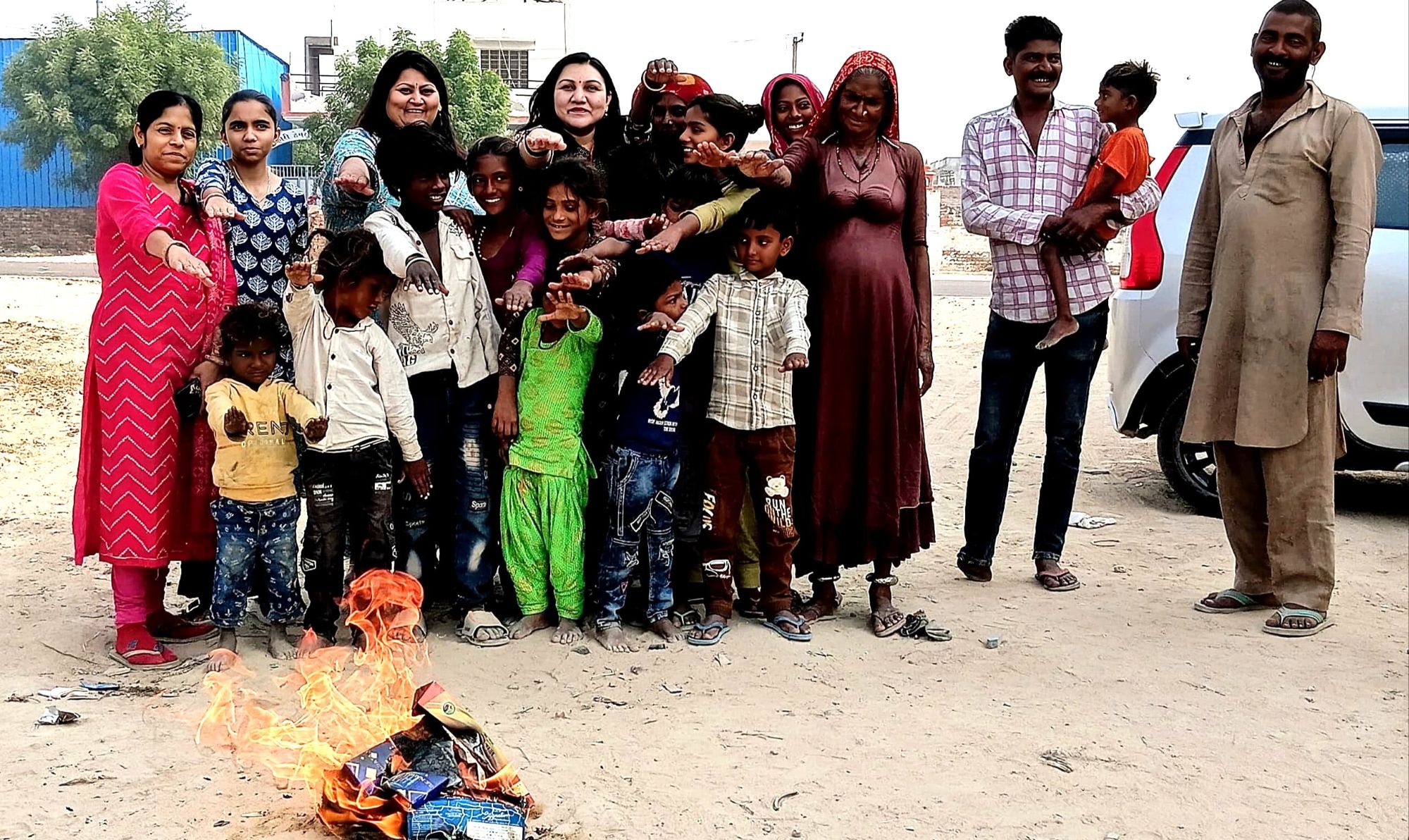 स्नेहा शर्मा व शगुन द्वारा बस्ती के उपस्थित सभी जनों को नशा न करने की शपथ दिलाई साथ ही महिलाओं व बच्चों को नए वस्त्र वितरित किए गए|