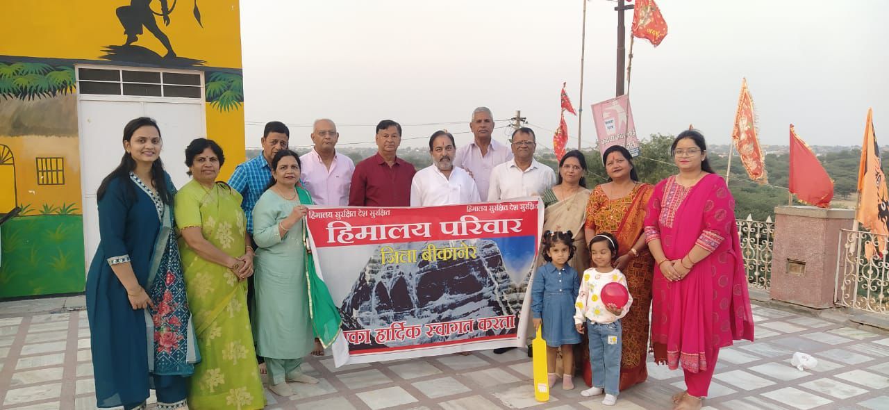 हिमालय परिवार बीकानेर ने बजरंग धोरे पर दीपावली स्नेह मिलन का आयोजन किया । स्नेह मिलन में हिमालय परिवार के आगामी आयोजनों के बारे में प्रांतीय उपाध्यक्ष डा. सुषमा बिस्सा ने प्रकाश डाला तथा बताया कि 30वीं सिंधु दर्शन यात्रा को सिंधु महाकुंभ का नाम दिया गया है तथा इस वर्ष देश विदेश से अनेक सदस्य व सैलेब्रेटीज शामिल होंगी । सचिव आर के शर्मा ने बताया कि सिंधु दर्शन यात्रा के यात्रियों के लिये देवस्थान विभाग द्वारा अनुदान राशि भी प्रदान की जाती है । इस अवसर पर उपस्थितों ने सांस्कृतिक प्रस्तुतियां दी तथा पूजा अर्चना कर सामूहिक प्रसादी ग्रहण कर समापन किया गया । इस अवसर पर जिलाध्यक्ष नरेश अग्रवाल, सचिव आर के शर्मा, सुरेश गुप्ता, राजीव मित्तल, गोवर्द्धन शर्मा, रोहिताश्व बिस्सा, संतोष शर्मा, ओजस्वी, अनिता अग्रवाल, सुशीला अग्रवाल, अनामिका व्यास, आरोही, आनंद कंवर, सरोजिनी शर्मा, ऋचा अग्रवाल, रेखा गुप्ता, प्रार्थना सक्सेना, राजीव, अंजलि मित्तल सहित अन्य उपस्थित थे ।