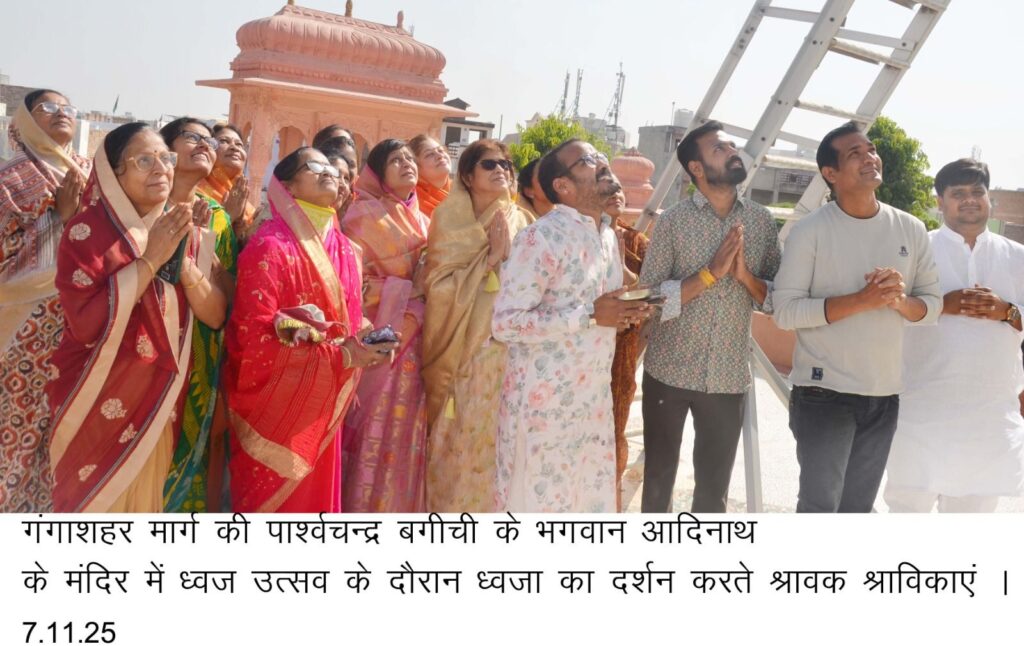 बीकानेर, 8 नवम्बर। गंगाशहर मार्ग पर स्थित पार्श्वनाथ बगीची के भगवान आदिनाथ मंदिर में शुक्रवार को ध्वजा उत्सव व 17 भेदी पूजा का आयोजन जैन श्वेताम्बर पार्श्वचन्द्र गच्छ संघ के तत्वावधान में हुआ। बगीची के भगवान आदिनाथ, पार्श्वचन्द्र सूरिश्वरजी व भैरव मंदिर के शिखर पर राजकुमार व सौरभ राखेचा परिवार ने लगातार 24 वें वर्ष ध्वजा चढ़ाने का लाभ भक्ति भाव से लिया।