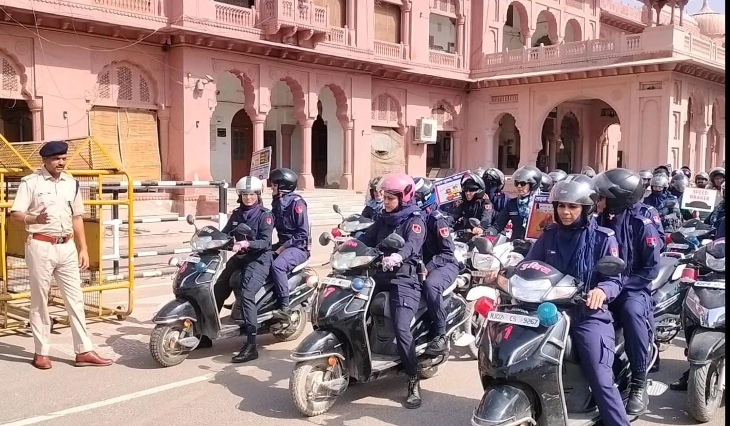 राष्ट्रगीत वंदे मातरम को 150 वर्ष पूर्ण होने के उपलक्ष में राष्ट्रीय स्तर मनाये जा रहे कार्यक्रमों की श्रृखंला में बीकानेर पुलिस द्वारा आज दिनांक 08.11.2025 को श्री हेमन्त शर्मा, महानिरीक्षक पुलिस, रेंज बीकानेर एवं श्री कावेन्द्रसिंह सागर जिला पुलिस अधीक्षक, बीकानेर के निर्देशन में श्री सौरभ तिवाड़ी, अति. पुलिस अधीक्षक, शहर बीकानेर द्वारा बीकानेर पुलिस की “महिला शक्ति यूनिट” को जिला कलक्टर कार्यालय बीकानेर से रवाना किया गया ।