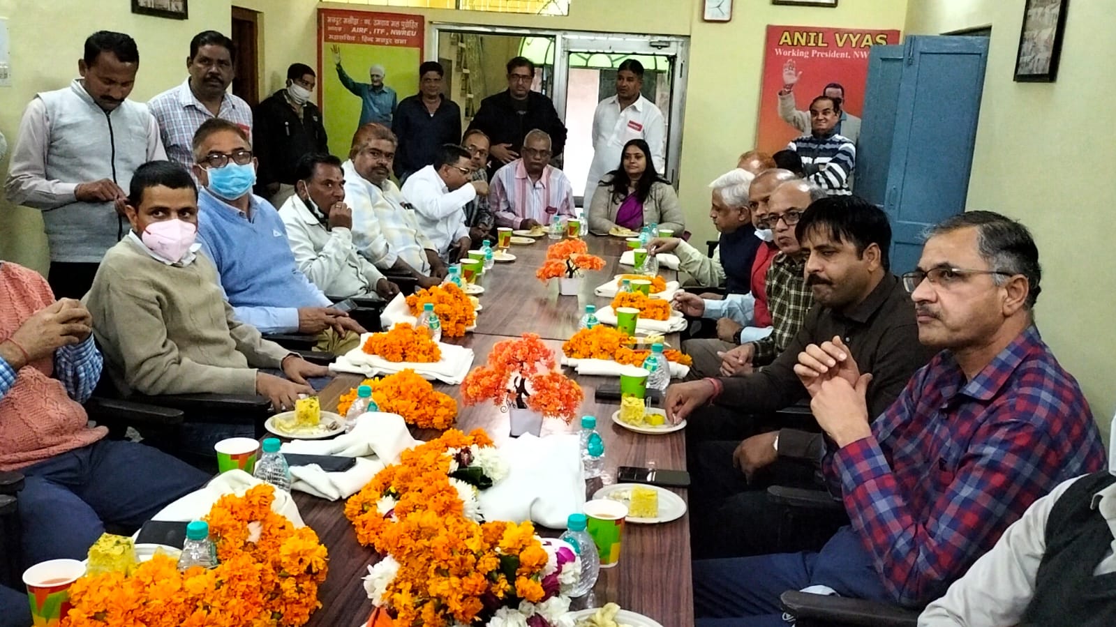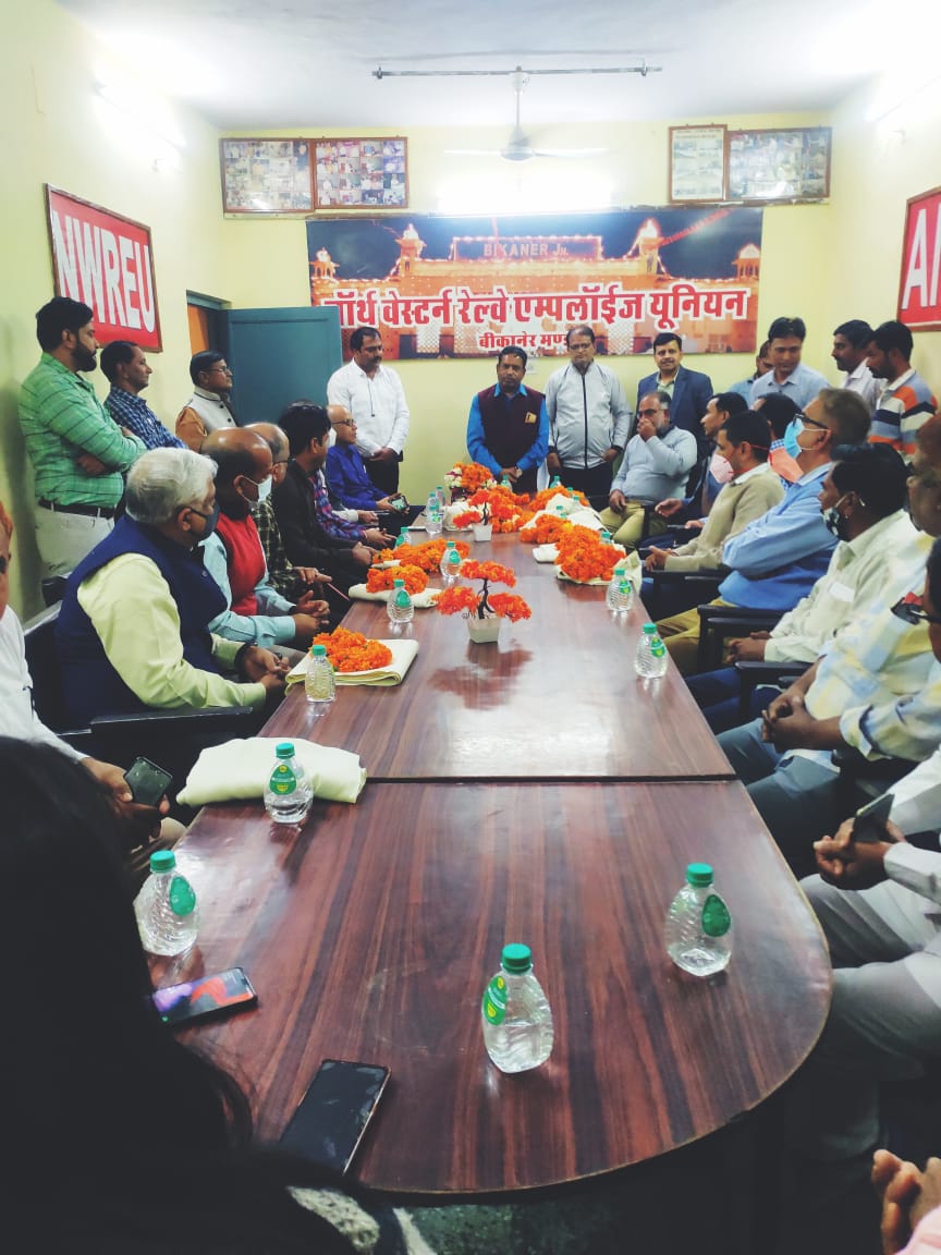 आज नॉर्थ वेस्टर्न रेलवे एम्प्लाइज यूनियन के जोनल अध्यक्ष श्री अनिल व्यास जी के निवेदन पर माननीय श्री राजीव श्रीवास्तव मंडल रेल प्रबंधक बीकानेर मोहदय ने नॉर्थ वेस्टर्न रेलवे एम्प्लाइज यूनियन बीकानेर मंडल के यूनियन कार्यालय अलख सागर रोड का निरक्षण किया इस अवसर पर बीकानेर मंडल के दोनों अपर मंडल रेल प्रबंधक (ADRM) के समस्त विभाग प्रमुख (BO) भी उनके साथ रहे ओर यूनियन के द्वारा प्रोग्राम मे सालों पूरे इस कार्यालय को देख इस की प्रशंसा की ओर यूनियन कार्यालय के संग्रहालय में मौजूद AIRF के समस्त पूर्व अध्यक्ष , एवं ब्लड बोनेट, कोरोना के समय कर्मचारियों द्वारा किया कार्य ,यूनियन द्वारा अन्य सामाजिक कार्य की छाया चित्रों को देखा ओर जोनल अध्यक्ष एवं समस्त यूनियन पदाधिकारी के द्वारा किये गए कार्य की सराहना की।