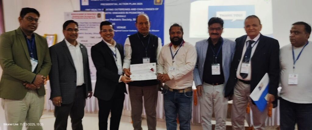 बीकानेर । सरदार पटेल मेडिकल कॉलेज, बीकानेर के शिशु एवं बाल रोग विभाग, बीकानेर पीडियाट्रिक्स सोसायटी तथा भारतीय बाल चिकित्सा, अकादमी के संयुक्त तत्वावधान में रविवार को आचार्य तुलसी रिसर्च एवं अनुसंधान केन्द्र के प्रेक्षागृह में बाल एवं शिशु रोग विशेषज्ञों की जूनोटिक रोग, कारण, प्रभाव व नियंत्रण’’ पर एक दिवसीय रविवार को कार्यशाला हुई।