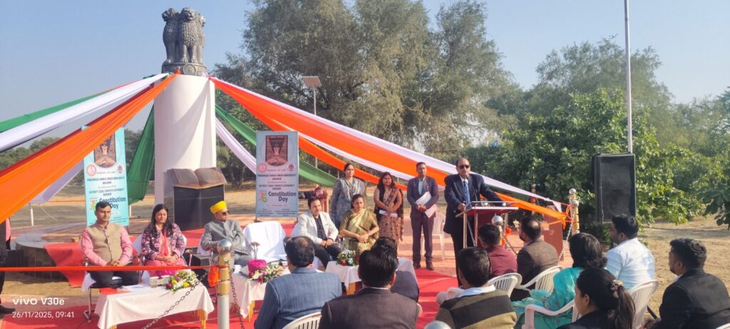 बीकानेर, 26 नवम्बर। जिला एवं सेशन न्यायाधीश तथा जिला विधिक सेवा प्राधिकरण के अध्यक्ष श्री अतुल कुमार सक्सैना द्वारा बुधवार को महाराजा गंगासिंह विश्वविद्यालय के संविधान पार्क, जिला न्यायालय तथा केन्द्रीय कारागृह में संविधान अंगीकृत दिवस मनाया गया। इसके अतिरिक्त समस्त तालुकाओं के न्यायिक अधिकारियों, पैनल अधिवक्ताओं, चीफ लीगल एंड डिफेंस के अधिवक्ताओं तथा पीएलवी द्वारा संविधान दिवस के उपलक्ष्य में कार्यक्रमों का आयोजन किया गया।