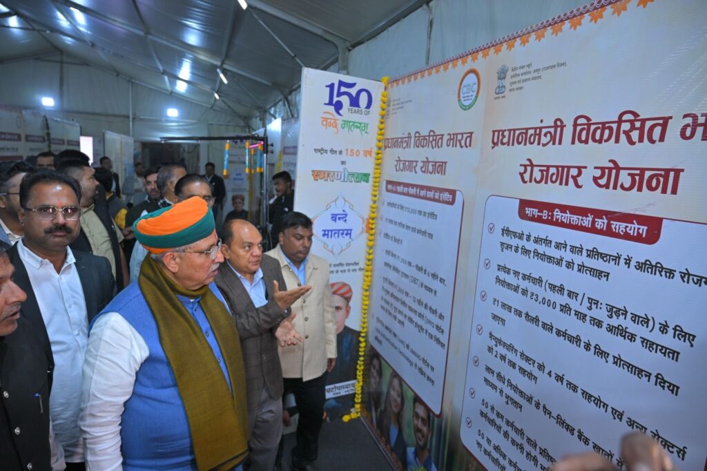 श्री मेघवाल ने कहा कि यह प्रदर्शनी वन्दे मातरम् के 150 वर्ष व नए श्रम कानून के साथ केंद्र एवं राज्य सरकार की जनकल्याणकारी योजनाओं को जन-जन तक पहुँचाने का महत्वपूर्ण माध्यम है। उन्होंने कहा कि प्रधानमंत्री की पहल पर वन्दे मातरम् गीत को जन-जन तक पहुँचाने के लिए 150 वर्ष का जश्न मनाया जा रहा है।