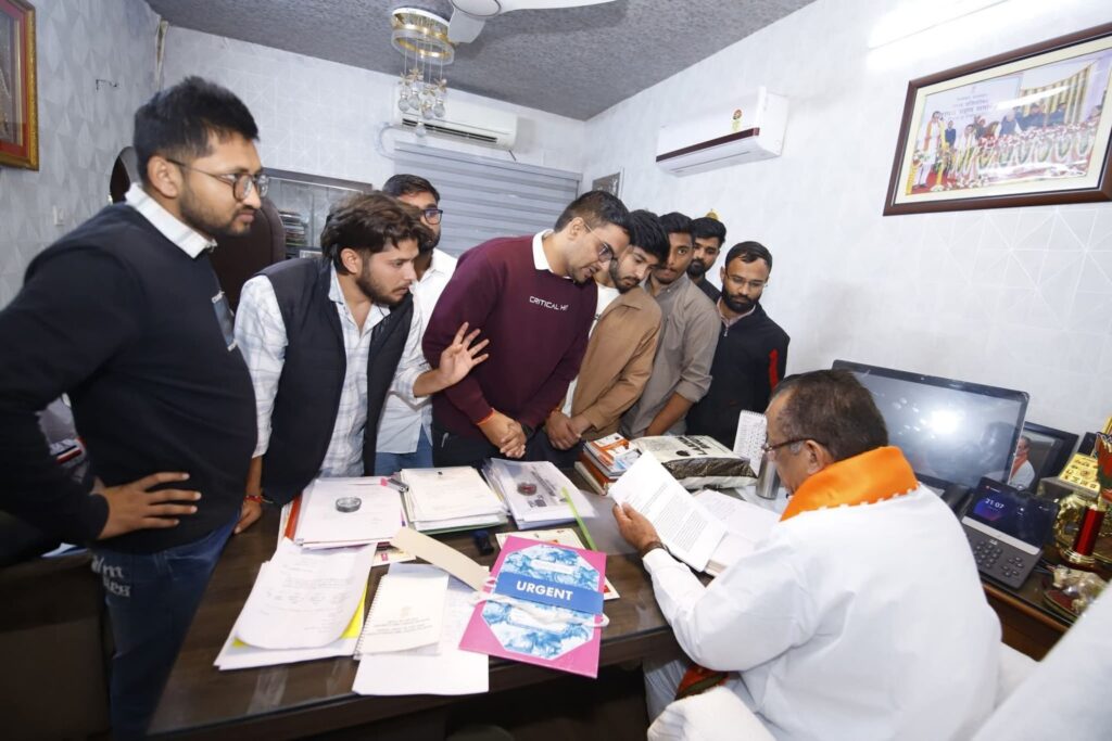 राजस्थान में पशु चिकित्सक भर्ती 2025 को लेकर 2020 बैच के छात्रों के साथ हो रहे अन्याय के विरोध में आज अखिल भारतीय विद्यार्थी परिषद का प्रतिनिधि मंडल सक्रिय नजर आया। अभाविप अध्यक्ष राजुवास बीकानेर डॉ. जितेंद्र सिंह बीका और डॉ. युद्धवीर सिंह बुडानिया के नेतृत्व में प्रतिनिधि मंडल ने पशुपालन मंत्री जोराराम कुमावत से मुलाकात की। इसके बाद भाजपा प्रदेश मुख्यालय में कृषि मंत्री डॉ किरोडी लाल मीणा मंत्री ओटाराम देवासी और प्रदेश महामंत्री श्रवण सिंह बगड़ी से भी वार्ता हुई।