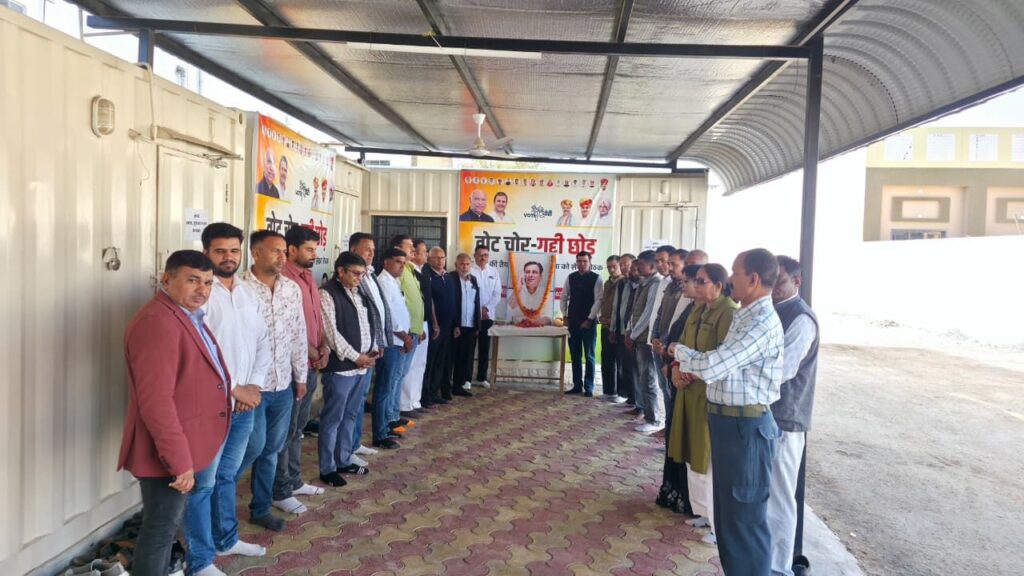 जिला कांग्रेस कमेटी देहात, बीकानेर द्वारा रानी बाजार स्थित कार्यालय में जिलाध्यक्ष बिशनाराम सियाग के सानिध्य में शेरेरा सरपंच प्रतिनिधि एवं जिला कांग्रेस कमेटी के महासचिव स्व. श्री भागीरथ गोदारा के असामयिक निधन पर श्रद्धांजलि सभा आयोजित हुई। जिसमें कांग्रेसजनों ने शेरेरा सरपंच प्रतिनिधि स्व. श्री भागीरथ गोदारा के तैलचित्र पर देहात कांग्रेस कमेटी के तमाम पदाधिकारीयों ने माल्याअर्पण व पुष्पांजली अर्पित कर दो मिनट का मौन रखा गया।
