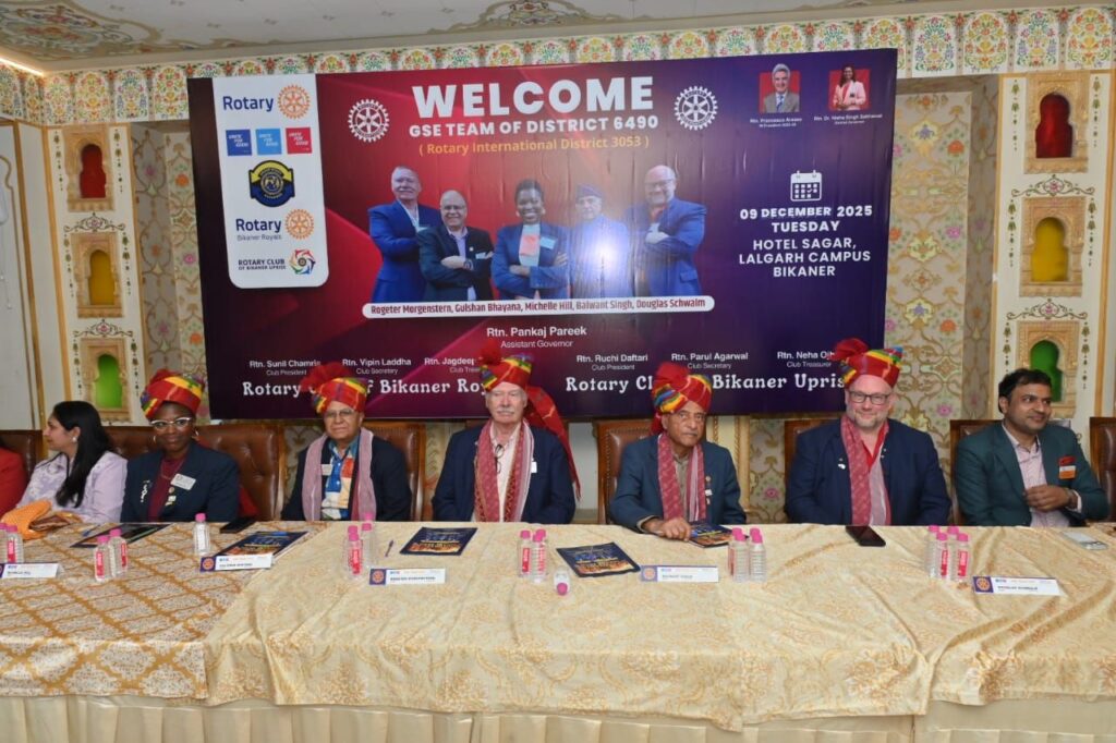 बीकानेर, रोटरी में प्रचलित जी एस ई (ग्रुप स्टडी एक्सचेंज) कार्यक्रम के अंतर्गत अमेरिका से रोटरी डिस्ट्रिक्ट 6490 के सदस्य इन दिनों अपनी यात्रा पर रोटरी 3053 डिस्ट्रिक्ट के विभिन्न क्लब के दौरे पर आए हुए हैं।