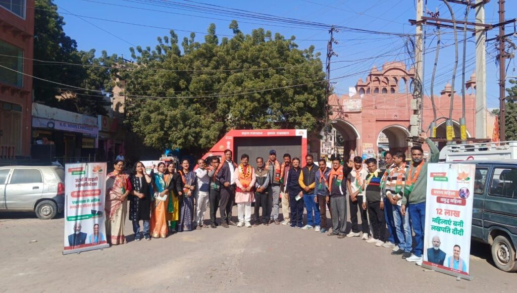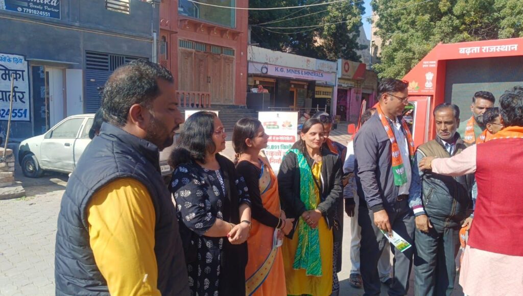 भाजपा सरकार के 2 साल पूर्ण होने के उपलक्ष्य में सुशासन सेवा पखवाड़ा के तहत विकास रथ आज पुराना शहर मंडल क्षेत्र में जस्सूसर गेट के अंदर ओर बी के स्कूल क्षेत्र में प्रवेश किया। पुराना शहर मंडल अध्यक्ष बहन आशा आचार्य के नेतृत्व में मंडल पदाधिकारियों और कार्यकर्ताओं ने भाजपा सरकार में हुए विकास कार्यों के प्रपत्र क्षेत्र में घर घर और दुकानों पर वितरित किए।