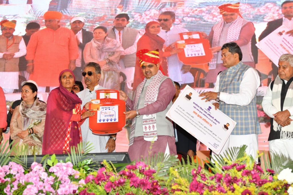 मुख्यमंत्री ने कहा कि हमारी सरकार ने किसान, युवा, महिला और गरीब के उत्थान के लिए कई कदम उठाए हैं। हमने किसानों के लिए सम्मान निधि को 6 हजार से बढ़ाकर 9 हजार रुपये किया गया है तथा चरणबद्ध रूप से इसे 12 हजार रुपये किया जाएगा। इसी तरह हमारी सरकार ने इन दो वर्षों में युवाओं के लिए सरकारी सेवाओं में अवसर बढ़ाते हुए लगभग 92 हजार नियुक्तियां प्रदान की है तथा 1 लाख 56 हजार पदों पर भर्तियां प्रक्रियाधीन है। वहीं, प्रदेश में 12 लाख से अधिक लखपति दीदी बनाने से लेकर 10 लाख 51 हजार साइकिलें और करीब 40 हजार स्कूटियां वितरण एवं लाडो प्रोत्साहन योजना की पहली किस्त से 4 लाख 60 हजार बालिकाओं को लाभांवित करने का काम किया गया है।