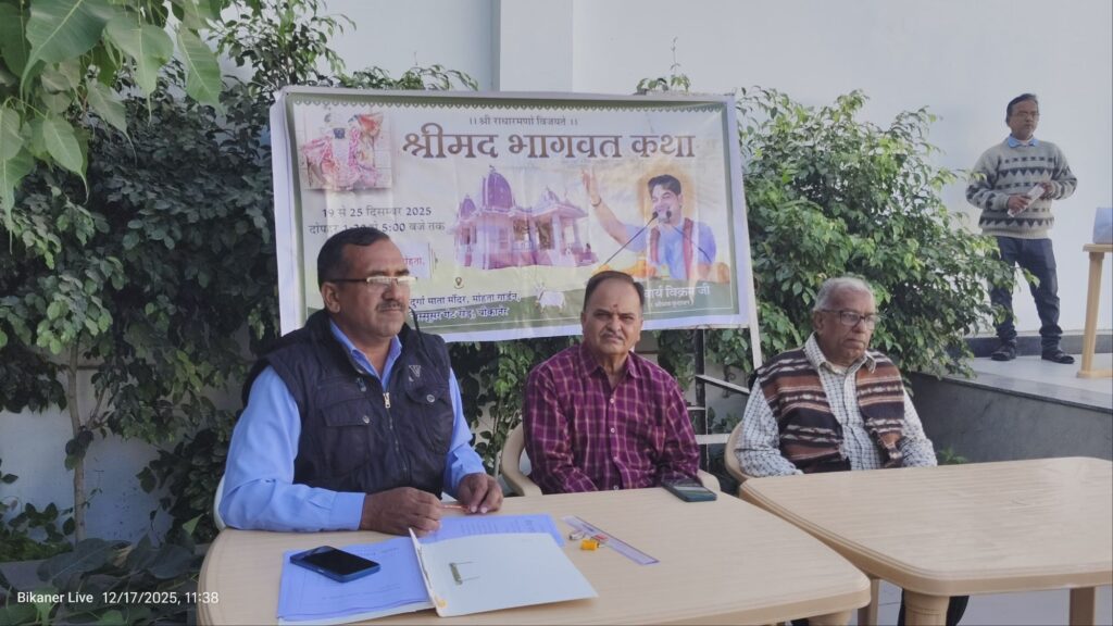 बीकानेर 17 दिसंबर। जस्सूसर गेट के बाहर भगवती फाऊंडेशन कोलकाता की ओर से संचालित से दुर्गा माता मंदिर में 19 से 25 दिसंबर दोपहर 1:30 बजे से शाम 5:00 बजे तक संगीत में भागवत कथा होगी। कथा का वाचन विवेचन वृंदावन के आचार्य विक्रम जी करेंगे । मंदिर के संस्थापक प्रकाश कुमार मोहता ने वर्चुअल माध्यम से बुधवार को संवाददाताओं को बताया कि आचार्य विक्रम जी देश के विभिन्न स्थानों पर कथा कर चुके हैं। दुर्गा माता मंदिर के पीछे मोहता गार्डन में पहली बार होने वाली भागवत कथा के लिए 2000 श्रद्धालुओं के बैठने की व्यवस्था की गई है। कोलकाता आए पन्नालाल कोठारी और मंदिर के व्यवस्थापक पूर्व कैप्टन भीवाराम ने बताया की भागवत कथा के दौरान 22 को नंद उत्सव 23 को गिरिराज पूजा, 24 को श्री कृष्ण रुक्मणी विवाह पर उत्सव मनाया जाएगा तथा की पूर्णाहुति हवन के साथ 25 दिसंबर को होगी ।कथा के प्रथम दिन मंदिर परिसर में कलश यात्रा निकाली जाएगी मंदिर के पंडित वृंदावन के अमित कुमार मिश्रा और अंकित कुमार मिश्रा पूजन कर कलश की प्रतिष्ठा करवाएंगे।