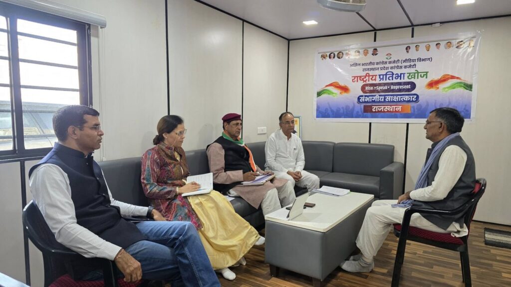 एआईसीसी राष्ट्रीय प्रतिभा खोज कार्यक्रम के अंतर्गत भारतीय राष्ट्रीय कांग्रेस द्वारा युवाओं को पार्टी प्रवक्ता, मीडिया पैनलिस्ट, अनुसंधानकर्ता व जनसम्पर्क समन्वयक इत्यादि के रूप में प्रशिक्षित करने और कार्य अवसर देने के उद्देश्य से शुरू किए गए इस कार्यक्रम के अंतर्गत पूर्व में ऑनलाइन आवेदन करने वाले आवेदकों का रानी बाजार स्थित देहात कांग्रेस कार्यालय में एआईसीसी राष्ट्रीय समन्वयक व सम्भाग प्रभारी मीनाक्षी सेठी ज़ैदी ने बीकानेर सम्भाग से आए युवाओं से ग्रुप डिस्कशन व साक्षात्कार किया। इस अवसर पर मीनाक्षी ने बताया कि आवेदन करने वालों की संख्या बहुत थी, परन्तु एआईसीसी टेलेंट हंट कमेटी ने उनमें से संविधान और लोकतंत्र में विश्वास रखने वाले नए चेहरों की छंटनी की है, जिनका साक्षात्कार और मूल्यांकन किया गया है। उन्होंने बताया कि इस कार्यक्रम का उद्देश्य कांग्रेस संगठन में नई ऊर्जा और नए चेहरों को मौका देना, संविधान और लोकतंत्र के मूल्यों को मजबूत करने वाले प्रतिभाशाली युवाओं की पहचान, मीडिया और जनसंपर्क के लिए प्रशिक्षित प्रवक्ता और पैनलिस्ट तैयार करना हैं। चयनित प्रतिभाओं को पार्टी की विचारधारा को आगे बढ़ाने और लोगों की आवाज बनने का मौका दिया जाएगा। साक्षात्कार कार्यक्रम में देहात कांग्रेस अध्यक्ष बिशनाराम सियाग, शहर कांग्रेस अध्यक्ष मदनगोपाल मेघवाल, कर्नल शिशुपाल सिंह निर्णायक मण्डल सदस्य के रूप में मीनाक्षी सेठी ज़ैदी के साथ साक्षात्कार के समय मौजूद रहें।