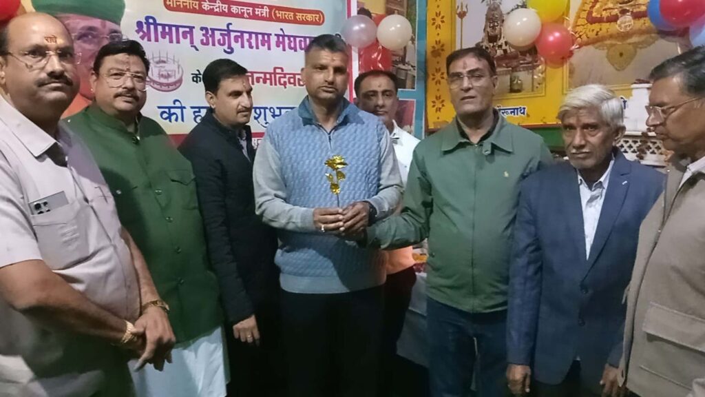 बीकानेर। पीबीएम स्थित कैंसर पीडि़तों के रैन-बसेरे में केन्द्रीय कानून मंत्री अर्जुनराम मेघवाल का जन्मदिन सेवा कार्यों के साथ मनाया गया। कार्यक्रम संयोजक कमल गहलोत ने बताया कि केन्द्रीय कानून मंत्री के 72वें जन्मदिन पर रैन-बसेरे में कैंसर पीडि़तों व उनके परिजनों को भोजन-प्रसादी परोसी गई तथा 100 कम्बलें वितरित की गई। श्यामसुंदर सोनी ने बताया कि सेवा कार्यों के दौरान केन्द्रीय मंत्री अर्जुनराम मेघवाल ने वर्चुअल जुड़कर कैंसर पीडि़तों व उनके परिजनों से संवाद किया। अर्जुनराम मेघवाल ने रैन-बसेरे में सर्दी को देखते हुए व्यवस्थाओं के बारे में भी जानकारी ली। इस दौरान नर्सिंग विद्यार्थियों ने भी पुष्पवर्षा कर केन्द्रीय कानून मंत्री का जन्मदिन मनाया। भैरुलाल मौसूण ने बताया कि रैन-बसेरे में निरन्तर सेवाएं प्रदान करने वाले संजय लावट एवं अतिरिक्त पुलिस अधीक्षक दीपचंद सारण का भी जन्मदिन मनाया गया। इस अवसर पर आरती व संकीर्तन का आयोजन कर मरीजों को स्वस्थ जीवन की मंगल कामनाएं की गई। कार्यक्रम में भेरूलाल सोनी, अमित राजपुरोहित, चंद्र सिंह चौहान, बाबूलाल सोनी, गिरिराज सोनी, शिव नारायण सोनी, विष्णु सोनी, विशाल सोनी, जानकी रमन मिश्रा, बद्रीराम कुमावत, महेंद्र सोनी, किरण सोनी उपस्थित रहे।