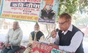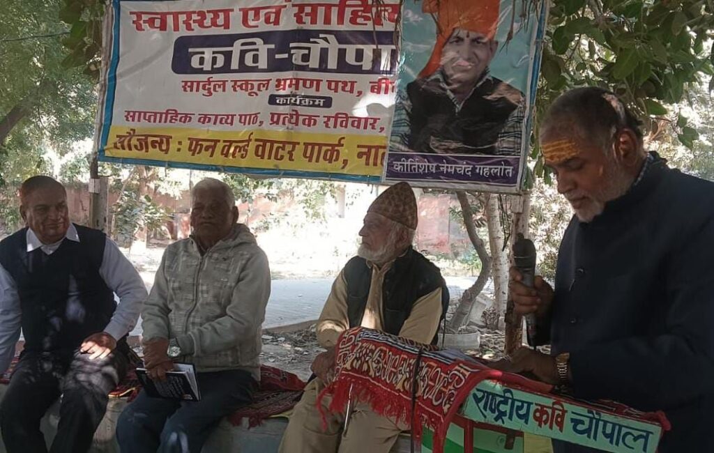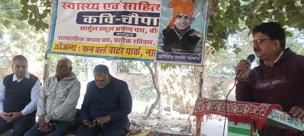 राष्ट्रीय कवि चौपाल की 547 वीं कड़ी *”आंतकवाद के खिलाफ हमारे जवान “* विषय पर केन्द्रित रही… यानी आज़ ऐसे चार वीर बलिदानी हमारे राष्ट्रीय नायक रामप्रसाद बिस्मिल, अशफाक उल्ला खां, रौशन सिंह, राजेन्द्र सिंह लाहिड़ी को समर्पित रही, आज के कार्यक्रम शुभारम्भ करते हुए रामेश्वर साधक ने स्व बौद्धिक में कहा कि नर से नारायण बनने का सुलभ राह यही कि आतंकियों को मारो जैसे राम कृष्ण ने धर्म संस्कृति सुरक्षा में किया। कार्यक्रम अध्यक्ष डॉ हरिदास हर्ष ने स्व बौद्धिक में कहा कि.. शायद उलटवांसियों का श्रेष्ठ उदाहरण हो इसलिए अपने दुखों का स्वयं ही बहुत बड़ा कारण हो … तथा देश भक्ति रचना के साथ साहित्य सभा में वीर योद्धाओं का जीवन्त स्वरूप दिखाया.. मुख्य अतिथि वैद्य विद्या सागर पंचारिया ने काव्यात्मक अपने भाव रखे बंगला देश में फैल रहा, साम्प्रदायिकता का जंग, हिंदुओं के अरमानों की हो रही दुर्दशा, सरदार अली परिहार ने ऊभो डाकी भरे सबड़का सररररर सप भ्रष्ट राजनेताओं पर कड़ा प्रहार किया… इससे पूर्व विशिष्ट अतिथि मनमोहन कपूर : शेष महेश दिनेश गणेश जाहि निरंतर गावें आध्यात्म रचना के साथ भग्वद् वंदना की