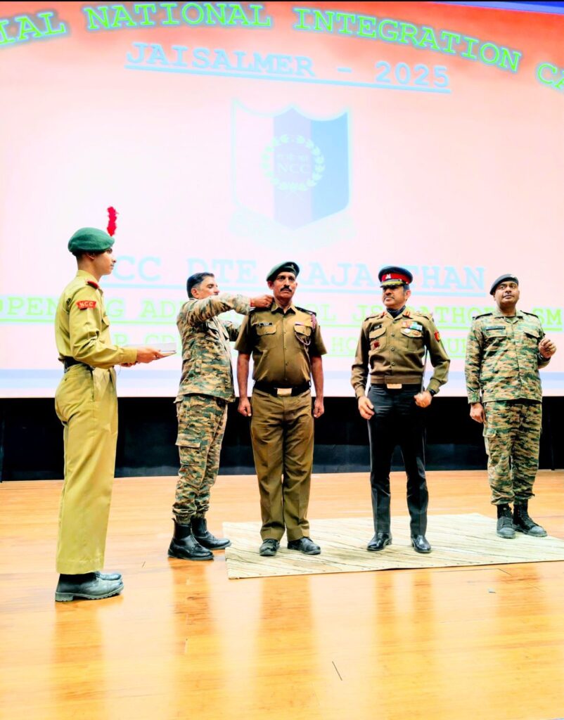 NCC की 7 वी राज बटालियन बीकानेर द्वारा इसी माह जैसलमेर सैन्य क्षेत्र में आयोजित विशेष राष्ट्रीय एकीकृत कैंप (SNIC) के दौरान 5-दिसम्बर को आयोजित पाइपिंग सेरेमनी में राजकीय पॉलीटेक्निक महाविद्यालय बीकानेर के असोसिएट एनसीसी अधिकारी कैप्टन एस एल राठी को अशोक चिह्न लगाकर मेजर रैंक से अलंकृत किया गया। समारोह में एनसीसी जोधपुर के ग्रुप कमांडर कर्नल जितेन्द्र सिंह राठौड़ व 7 वी राज बटालियन एनसीसी बीकानेर के कमान अधिकारी कर्नल नारायण सिंह ने कैप्टन राठी को अशोक चिन्ह लगाया। समारोह में कर्नल एम एस निज्जर लेफ्टिनेंट कर्नल ओए 17 निदेशालयों के 22 असोसिएट एनसीसी ऑफ़िसर्स (ANO), 18-JCO/NCO तथा भारत के विभिन्न राज्यों के 300 कैडेट्स उपस्थित रहे।