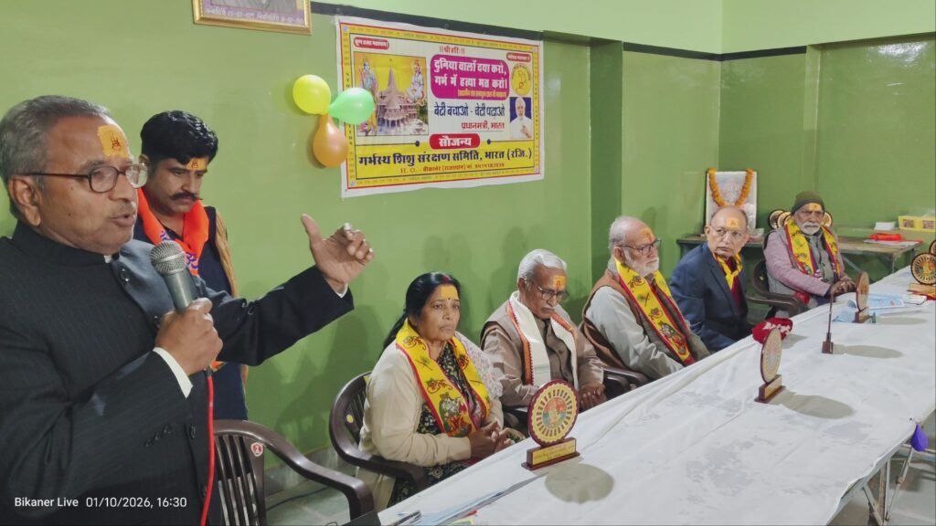 बीकानेर – गर्भस्थ शिशु संरक्षण समिति,भारत का जस्सूसर गेट बाहर पाराशर भवन में स्नेह मिलन व पौष बडा कार्यक्रम आयोजित हुआ, जिसमें कर्मकांडी ब्राह्मणों ने शपथ ली कि शादी में आठवें वचन में भ्रूण हत्या, गर्भपात महापाप नहीं करने की नव दंपती को शपथ दिलाएंगे।