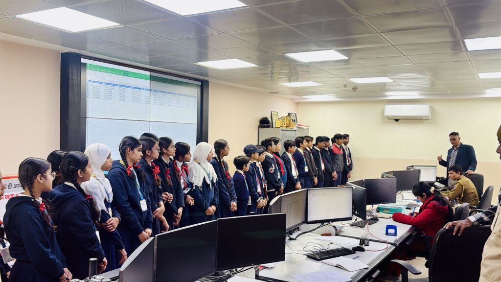 इसके साथ ही द्वितीय चरण में सम्पूर्ण टीम के विद्यार्थियों ने ट्रैफिक पुलिस थाना, साइबर सेल विभाग और अभय कमांड सेंटर का दौरा किया। जिसमे ट्रैफिक पुलिस स्टेशन के श्री कृष्ण कुमार (एच एम), शिव कुमार शर्मा, प्रोग्रामर अधिकारी एवं श्री ओम जी मुंड असिस्टेंट सब इंस्पेक्टर साइबर पुलिस स्टेशन, बीकानेर ने विद्यार्थियों को यातायात नियमों, वर्तमान में बढ़ रहे साइबर क्राइम के बचाव की पूर्ण जानकारी उपलब्ध करवायी। कार्यक्रम में अभय कमांड सेंटर में उपस्थित सम्पूर्ण बीकानेर की जानकारी हेतु लगे सीसीटीवी कैमरों के बारे में भी विद्यार्थियों को जानकारी प्रदान की।