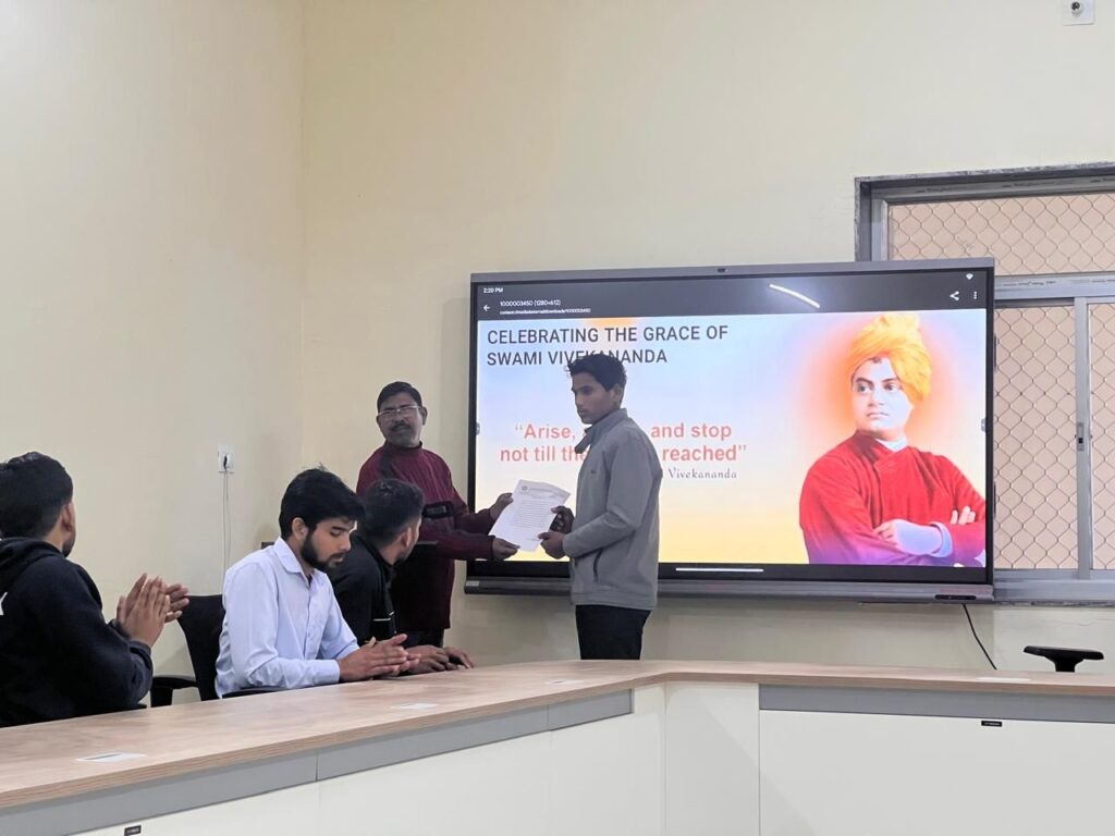 इस अवसर पर अधिष्ठाता डॉ पाल ने व्याख्यान देते हुए स्वामी विवेकानंद के संघर्षपूर्ण जीवन, आत्मबल, चरित्र निर्माण एवं राष्ट्र निर्माण में युवाओं की निर्णायक भूमिका पर प्रकाश डाला तथा विद्यार्थियों को विकसित भारत के यंग लीडर के रूप में स्वयं को तैयार करने हेतु प्रेरित किया। कार्यक्रम के अंत में छात्र कल्याण आचार्य डॉ. संदीप खरे द्वारा धन्यवाद ज्ञापन प्रस्तुत किया गया।
