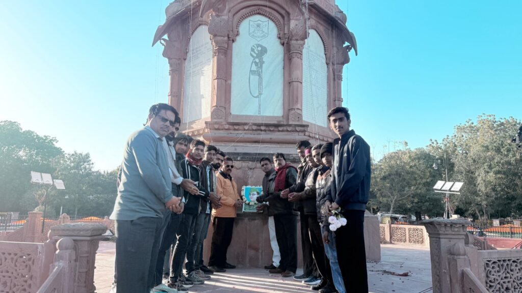 बीकानेर। मित्र एकता सेवा समिति द्वारा नेताजी सुभाष चंद्र बोस की 129 वीं जयंती शुक्रवार की शाम पब्लिक स्थित शहीद स्मारक पर मनाई गई। संस्था के संरक्षक सुनील दत्त नागल ने प्रेस विज्ञप्ति में बताया कि नेताजी की जयंती पर उनके तेल चित्र पर माल्यार्पण एवं पुष्पांजलि अर्पित कर भारत माता के जोशीले नारों के साथ उनके जीवन के बलिदान को याद किया। इस अवसर पर संस्था के वरिष्ठ उपाध्यक्ष अनिल पाहुजा, विशेष आमंत्रित मेहमान बीजेपी नेता राजकुमार जीनगर, एनडी कादरी, संस्था सचिव सैयद अख़्तर, भवानी आचार्य, शांति देवी चौहान, एनडी कादरी, खेमेन्द्र जीनगर एवं संस्था संरक्षक सुनील दत्त नागल ने नेताजी के जीवन पर अपने सम्बोधनों में प्रकाश डाला । पुष्पांजलि अर्पित कार्यक्रम में लक्ष्मण सोलंकी, किसन पुरोहित, संजय पुरोहित, मयंक रैगर, भूपेंद्र राजपुरोहित, संजय भावरिया, वेकेंटेश बामणिया, रत्नदीप,अमन, दीपक, संजय शर्मा सहित आदि उनको नमन किया।
