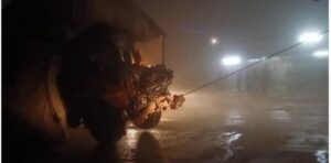 बीकानेर / श्रीडूंगरगढ़ क्षेत्र में जयपुर से बीकानेर जा रही एक स्लीपर बस नेशनल हाईवे पर चारे से भरे ट्रेलर से टकरा गई, जिसके बाद बस में आग लग गई। बस के यात्री इमरजेंसी गेट से सुरक्षित बाहर निकल गए।
