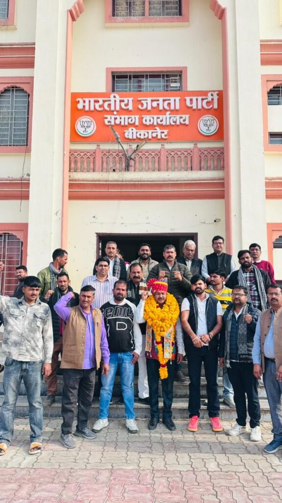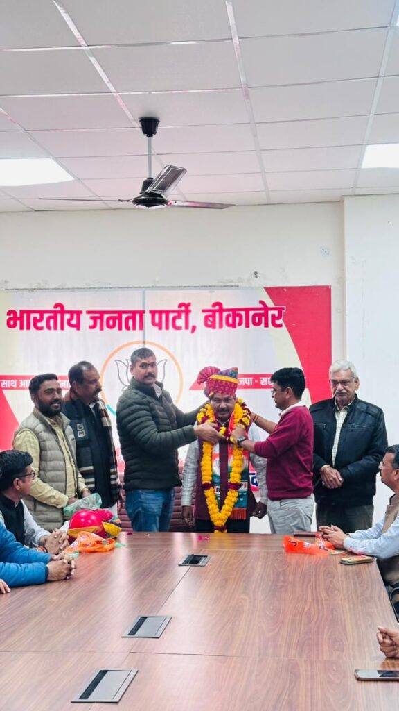 बीकानेर। भारतीय जनता पार्टी, बीकानेर देहात जिला अध्यक्ष श्री श्याम जी पंचारिया के सफल एवं प्रेरणादायी एक वर्ष के कार्यकाल पूर्ण होने के अवसर पर कार्यकर्ताओं द्वारा साफा व माला पहनाकर स्वागत-अभिनंदन किया गया तथा मिठाइयाँ वितरित कर हर्ष व्यक्त किया गया।