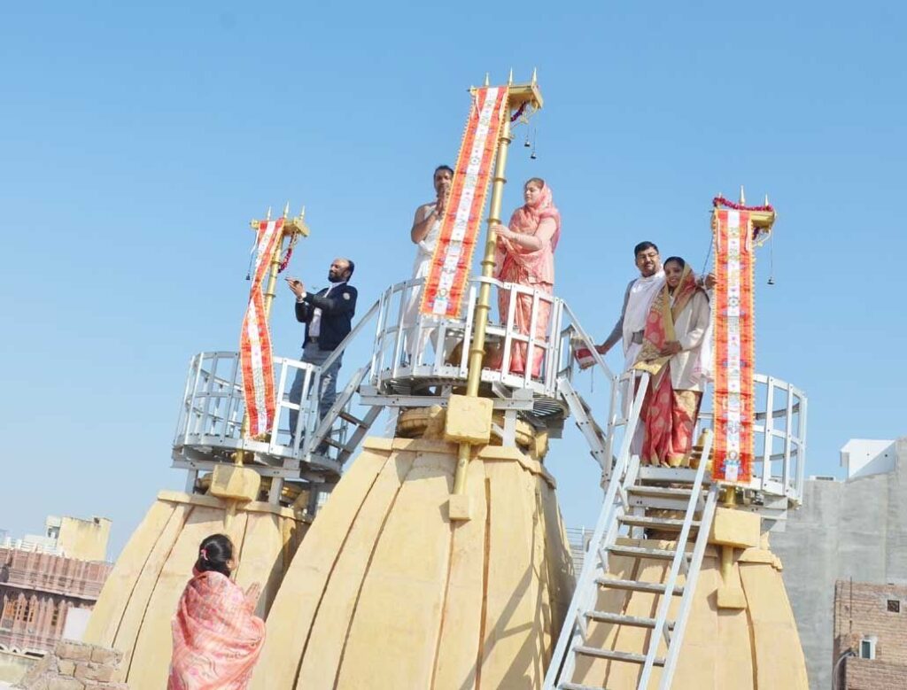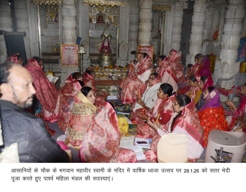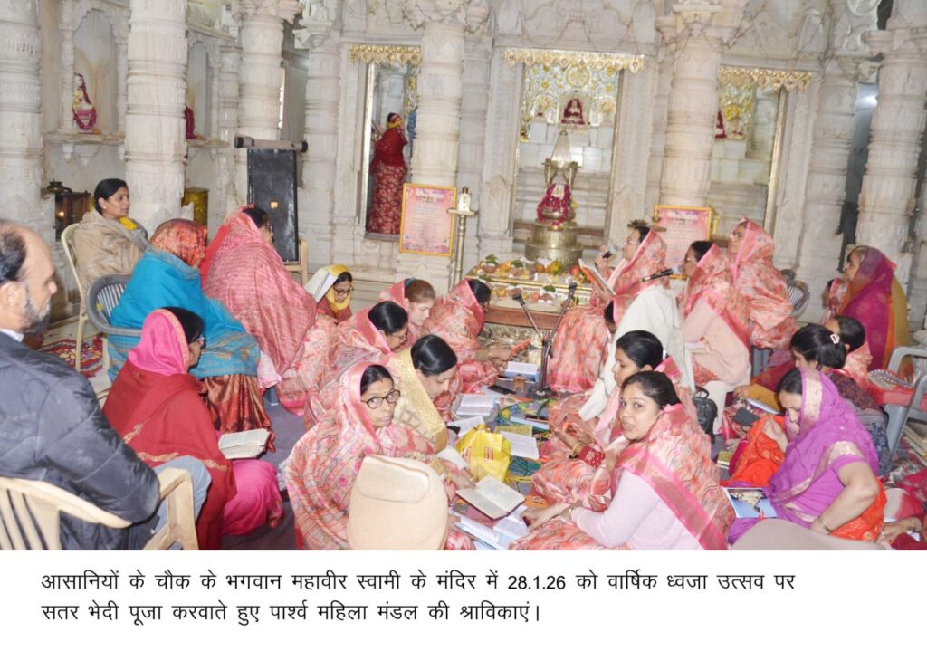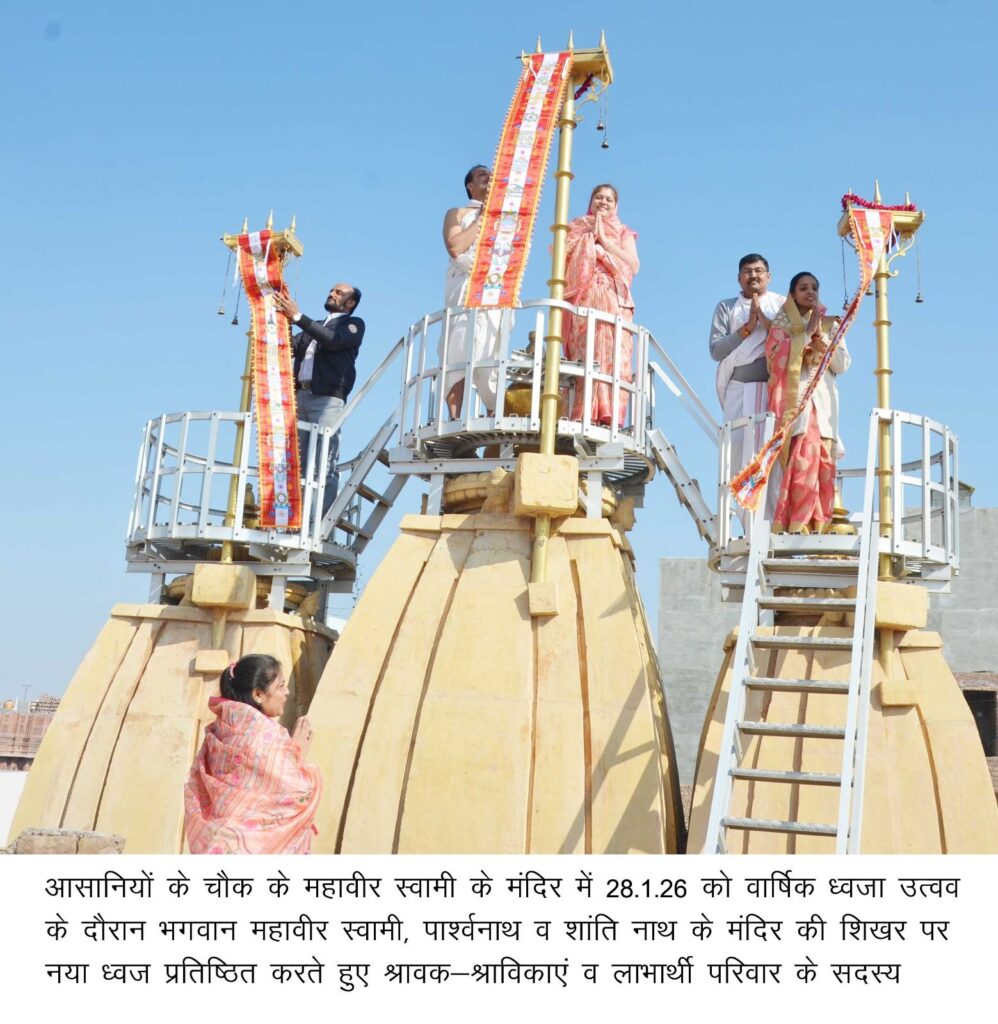 बीकानेर, 28 जनवरी। आसानियों के चौक के भगवान महावीर के मंदिर में बुधवार को जैन श्वेताम्बर पार्श्वचंद्र गच्छ की वरिष्ठ साध्वी श्री पदम प्रभा व सुव्रताश्रीजी के सानिध्य में वार्षिक ध्वजा उत्सव में भगवान महावीर स्वामी, भगवान पार्श्वनाथ व शांति नाथ के मंदिर के शिखर पर नई ध्वजा प्रतिष्ठित की गई। करीब 920 वर्ष प्राचीन प्रतिमाओं के विशेष श्रृंगार किया गया।
