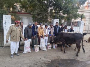 एकादशी पर विप्र सेना नोखा की गौसेवा, सर्दी में गायों को खिलाई सवा कुंटल गुड़ की लापसी