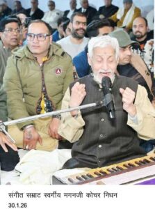 बीकानेर, 30 जनवरी। अस्सी संगीत साजों के साजिन्दे, सप्तम स्वर के गायक, संगीत सम्राट की उपाधि से अलकृंत 74 वर्षीय मगन कोचर का शुक्रवार को निधन हो गया। वे अपने पीछे भरापुरा परिवार तथा अनेक संगीत शिष्यों को बिलखता छोड़ गए है। उनके पार्थिव देह की अंत्येष्टि शुक्रवार को ही गोगागेट के बाहर जैन समाज के श्मशानगृह में की गई। उनकी अंत्येष्टि में बड़ी संख्या में जैन, अजैन, संगीत से जुड़े कलाकारों ने अंतिम श्रद्धांजलि दी।