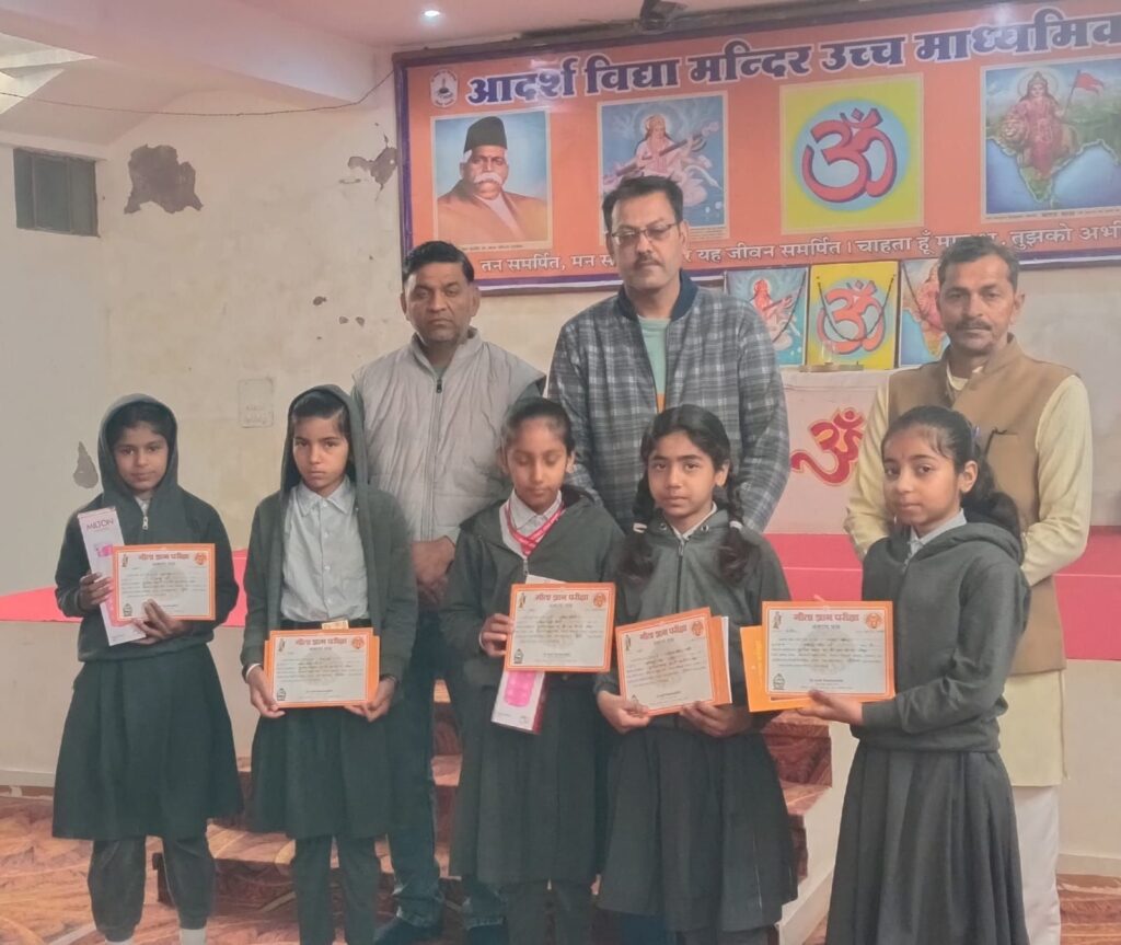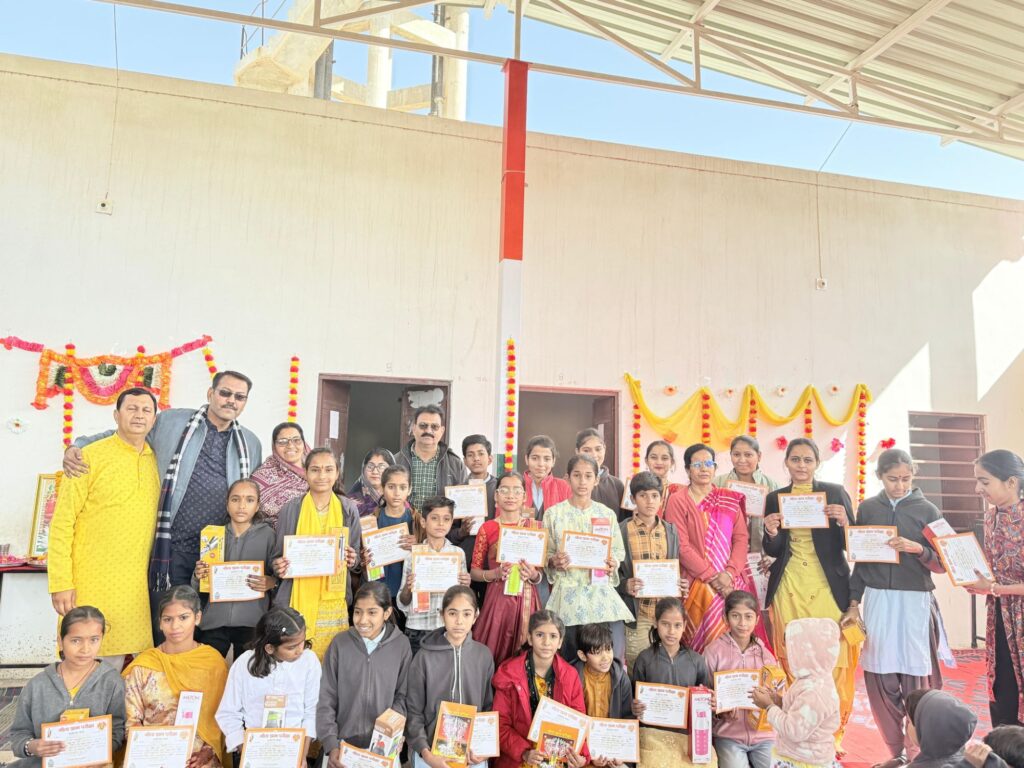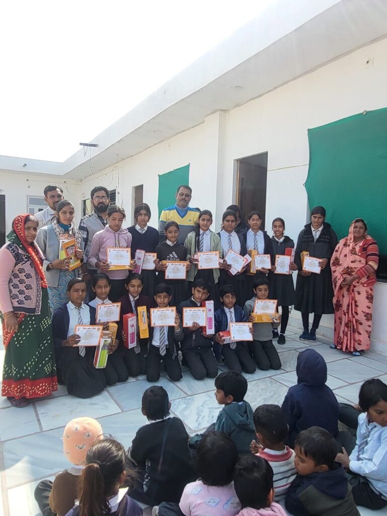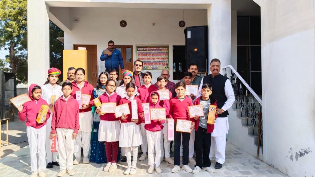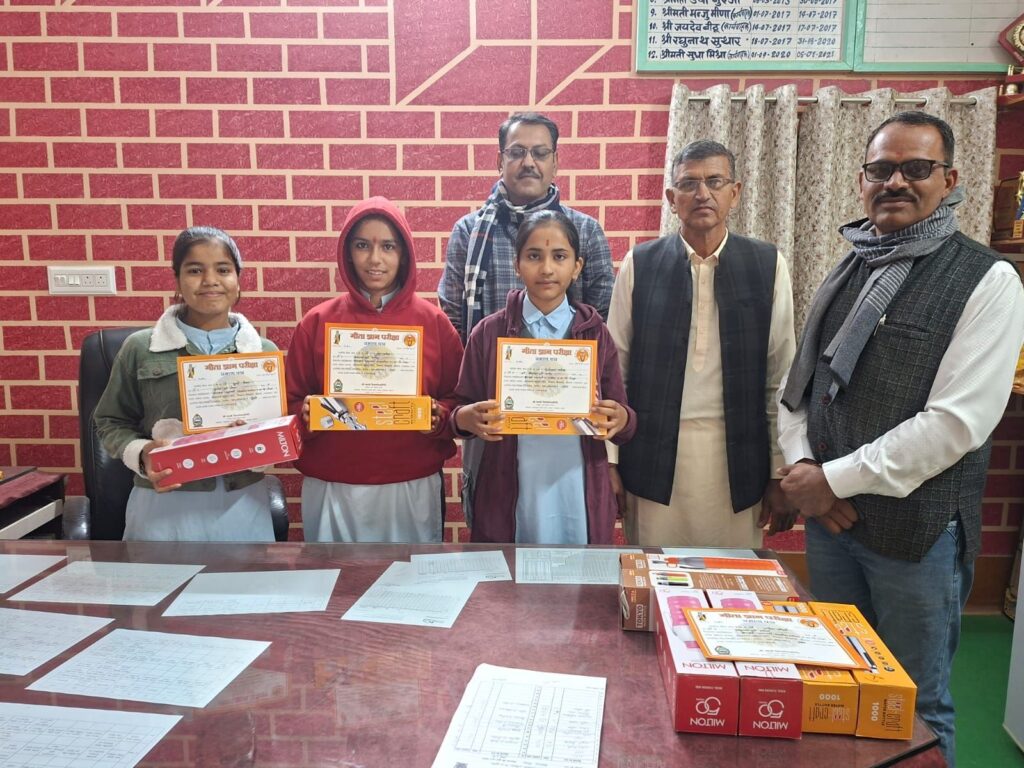 नोखा l नोखा में मानव प्रबोधन प्रन्यास, श्री लालेश्वर महादेव मंदिर, शिवमठ,शिवबाड़ी बीकानेर के तत्वाधान में आयोजित गीता ज्ञान लिखित परीक्षा मे शामिल नोखा, रोड़ा व जसरासर के सभी स्कूलों में पुरस्कार वितरण किए गए। नोखा प्रभारी पवन चांडक ने बताया कि इस बार सभी स्कूलों में 4 से 12 कक्षा तक प्रत्येक कक्षा में निर्धारित मापदंड के अनुसार प्रथम पुरस्कार स्टील की पानी की बोतल, द्वितीय में मिल्टन कम्पनी की पानी की बोतल, तृतीय में टोक्यो कंपनी की पानी बोतल व बाकी सभी को प्रोत्साहन के स्वरूप गीता ज्ञान कॉपी पुरस्कार स्वरूप वितरण किए गए। सभी शामिल स्कूलो के 309 विद्यार्थियों को गीता ज्ञान लिखित परीक्षा में पुरस्कार प्राप्त हुए हैं l बालक बालिकाओं के चेहरे पर पुरस्कार प्राप्त करने से खुशी झलक रही थी। गीता स्मरण परीक्षा के निर्धारित मापदंड अनुसार पुरूस्कार स्वरूप प्राप्त रुपये भी 10 फरवरी तक सभी स्कूलो में भेज दिये जायेंगे l नोखा प्रभारी पवन चांडक व महावीर साध ने गीता ज्ञान परीक्षा में शामिल सभी स्कूलों का आभार व्यक्त किया व अगली बार ज्यादा से ज्यादा बच्चों को परीक्षा में भाग लेने की विनती की l सभी स्कूलो के गुरूजनों को सहयोग के लिए धन्यवाद व साधुवाद कहा l पुरस्कार वितरण में इंदरचंद मोदी, रामदयाल गहलोत, यश चंडक, धर्मेंद्र गहलोत, कंचन सेवग, प्रिया राठी, बजरंग पंचारिया आदि ने सहयोग किया।
