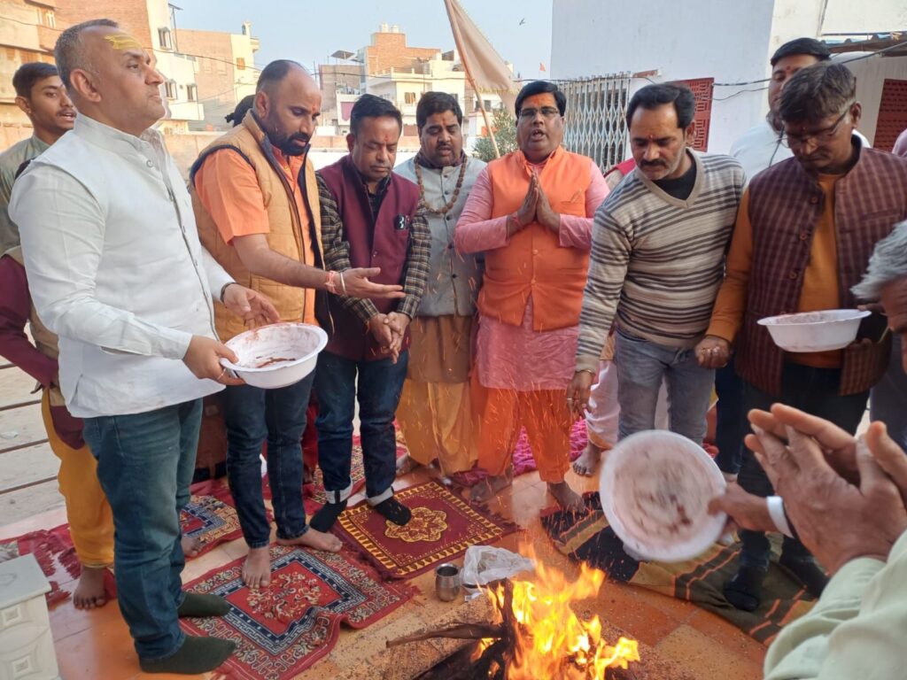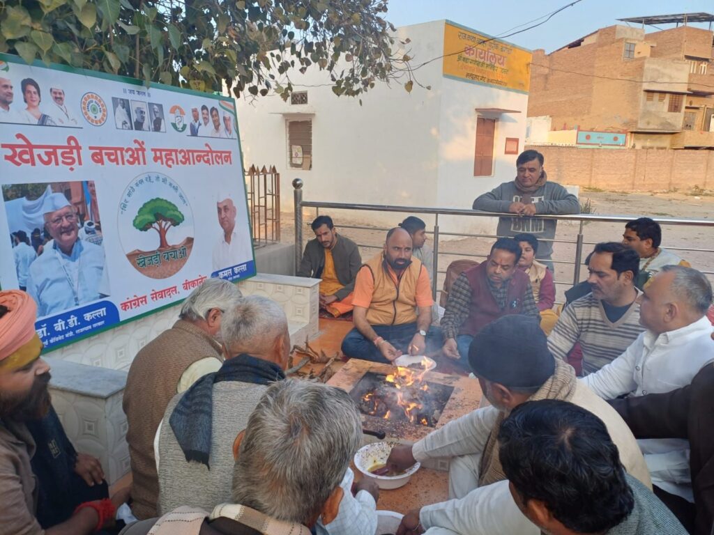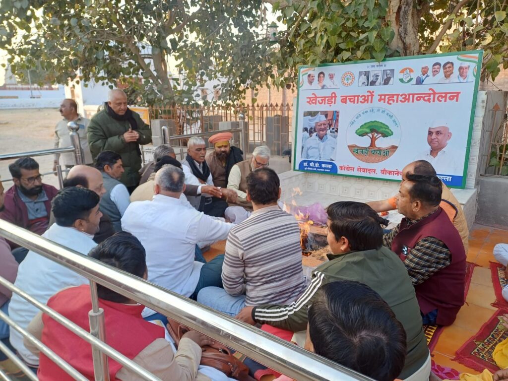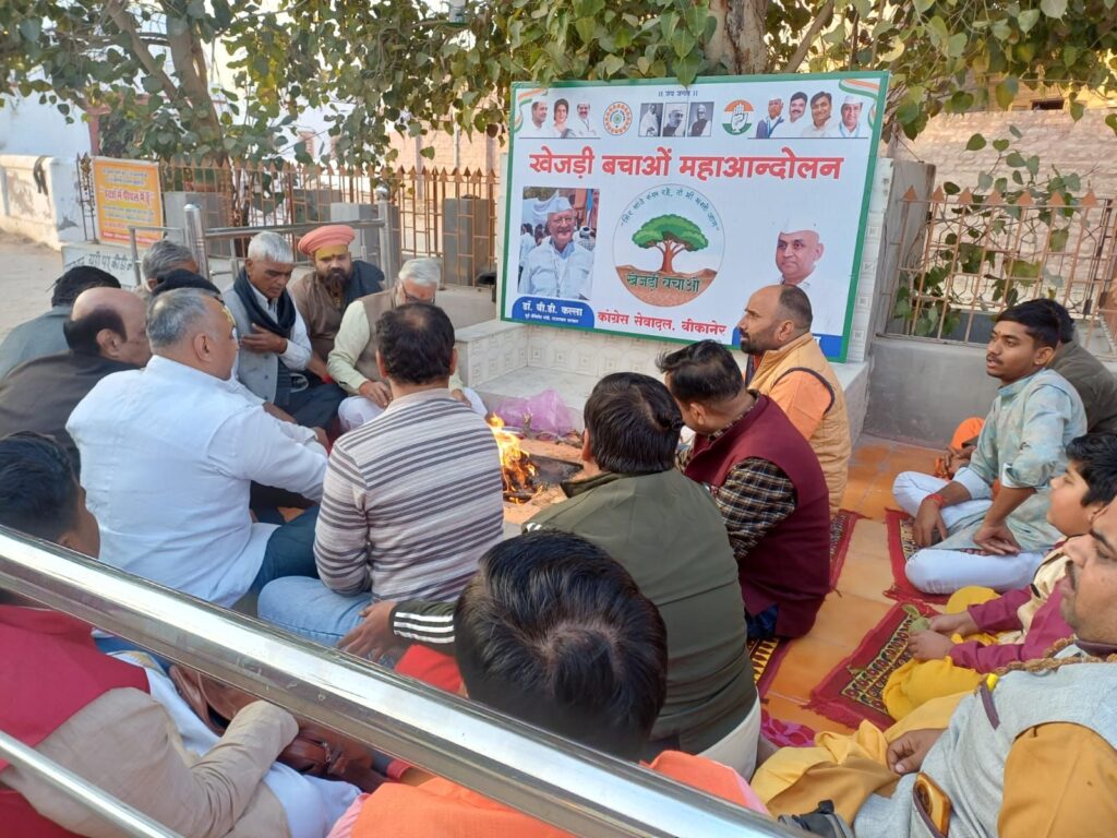 बीकानेर l बीकानेर में चल रहे खेजड़ी बचाओ आंदोलन के समर्थन में बीकानेर के शहरी क्षेत्र में भी लोगों का समर्थन दिखाना शुरू हो गया है। इसी क्रम में आज नत्थूसर गेट के बाहर स्थित बड़ा गणेश जी के मंदिर में सेवा दल के सयोजन मै विष्णु यज्ञ का आयोजन किया गया इस आयोजन के माध्यम से सरकार की सद्बुद्धि के लिए भगवान विष्णु से प्रार्थना की गई। कांग्रेस सेवा दल के प्रदेश उपाध्यक्ष कमल कल्ला ने बताया कि भगवान विष्णु सृष्टि का पालन करता है और वही सृष्टि में सद्बुद्धि देता है इसलिए आज यज्ञ के माध्यम से भगवान विष्णु से प्रार्थना की गई है कि वह राज्य व केंद्र सरकार को सद्बुद्धि दे और राजस्थान का राज्य वृक्ष खेजड़ी बढ़ाने की मानसिकता सरकार में बैठे नेताओं पर अधिकारियों में पैदा करें। कमल कल्ला ने कहा कि जब सरकार से और मनुष्यों से उम्मीद समाप्त हो जाती है तब हमारे पास ईश्वर की शरण में जाने के अलावा कोई उपाय नहीं रहता है सरकार से बार-बार निवेदन करने के बाद और ज्ञापन देने के बाद भी जब खेजड़ी की कटाई को रोक नहीं गया और प्रदेश में लाखों की संख्या में खेजड़ी के पेड़ काट दिए गए तब यह आंदोलन सड़कों पर आया और इस राज्य में जो संस्कृति बचाने और संस्कृति संरक्षण के नाम पर सत्ता में आई है उसमें भी राजस्थान की पर्यावरण की सांस्कृतिक प्रतीक खेजड़ी संकट में है, उम्मीद है कि भगवान विष्णु सरकार को सद्बुद्धि देगा और राजस्थान की धरती का श्रंगार खेजड़ी बच पाएगी। इस अवसर पर शहर अध्यक्ष अनील व्यास ने कहा कि केंद्र और राज्य में भाजपा की सरकार है और यह सरकार हिंदू हित और सनातन संस्कृति के नाम पर ही सत्तासीन हुई l ऐसे में जनता को उम्मीद थी कि सरकार सनातन और सांस्कृतिक प्रतीकों के साथ खिलवाड़ नहीं करेगी लेकिन सरकार ने अपने धन्ना सेठों के फायदे के लिए राजस्थान का राज्य वृक्ष खेजड़ी दाव पर लगा दिया जिसे किसी भी सूरत पर स्वीकार नहीं किया जाएगा। विश्नोई समाज के गुमान राम ने गुरु जाम्बेश्वर की शब्द वाणी का वाचन किया औऱ अपनी बात कहते हुए कहा कि राजस्थान के लोगों के लिए खेजड़ी अपनी जान से ज्यादा कीमती है और राजस्थान का इतिहास राय यहां के लोगों ने अपनी जान देकर भी खेजड़ी की रक्षा की है ऐसे में हर कीमत पर खेतड़ी के वृक्ष की रक्षा की जाएगी। इस अवसर पर विश्नोई समाज के बनवारी बिश्नोई, गुमान राम बिश्नोई,मनोज बिश्नोई, सुरजाराम पंचारिया,सोहनलाल उपाध्याय, मगनलाल पाणेचा, चंद्रशेखर राठौर,मनीराम चौधरी