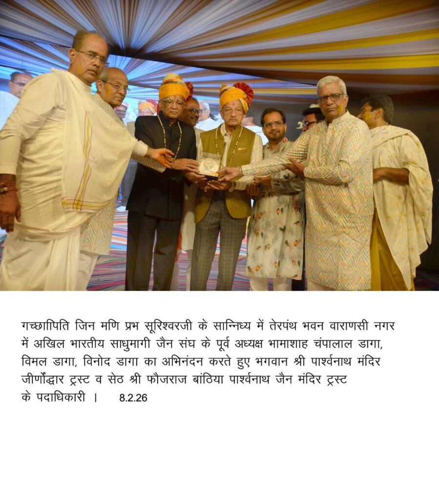 गंगाशहर के तेरापंथ भवन अस्थाई वाराणसी नगर में मंदिर निर्माण में परोप-अपरोक्ष सेवाएं देरे वालों व भामाशाहों का अभिनंदन किया गया। पूर्व शिक्षामंत्री डॉ.बुलाकी दास कल्ला, वयोवृद्ध पंडित नथमल पुरोहित, फतेहचंद डागा परिवार के वरिष्ठ सदस्य तथा अखिल भारतीय साधुमार्गी जैन संघ के पूर्व राष्ट्रीय अध्यक्ष चंपालाल डागा, विमल डागा, विनोद डागा, पारस डागा, जय चंद लाल डागा, दिल्ली के विनोद कांकरिया,राजीव मेहता, राष्ट्रीय स्वयं सेवक संघ दिल्ली के प्रांतीय कार्यवाही अनिलजी, सह प्रांतपाल दिनेश यादव, दिल्ली के उप पुलिस कमीशनर, हेमंत तिवारी, कुशलपाल सिंह, मुंबई के संगीतकार नरेन्द्र भाई वाणीगोता, खरतरगच्छ युवा परिषद के राष्ट्रीय संरक्षक राजीव खजांची, अध्यक्ष अनिल सुराणा, मंत्री विक्रम भुगड़ी, खरतरगच्छ महिला परिषद की अध्यक्ष मनीषा खजांची, मंत्री लीला बेगानी, हनुमानदास, मंगनी देवी सिपानी परिवार के शांति विजय सिपानी, संदीप सिपानी, सेठिया परिवार, सहित आदि का सम्मान धनपत सिंह बांठिया, रविन्द्र बांठिया, नई दिल्ली उतर के पुलिस कमीशनर राजा बांठिया, मनोज व संजय बांठिया आदि सेठ श्री फौजराज बांठिया परिवार के सदस्यों ने किया। बांठिया परिवार के परिजनों रिश्तेदारों ने भी मंदिर निर्माण व प्रतिष्ठा महोत्सव में भागीदारी निभाने वाले बांठिया परिवार का अभिनंदन किया। वहीं खरतरगच्छ युवा परिषद ने राजा बांठिया का अभिनंदन किया।