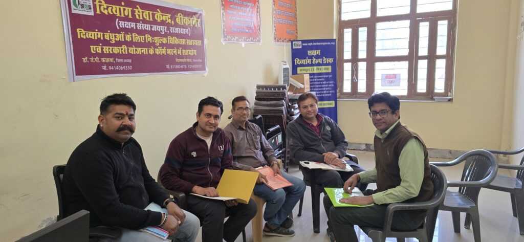 रविवार, 8 फरवरी 2026 को प्रातः 10 बजे सक्षम दिव्यांग सेवा केंद्र में सक्षम बीकानेर जिला कार्यकारिणी की बैठक आयोजित की गई। बैठक की अध्यक्षता श्री नीरज शर्मा (प्रांत उपाध्यक्ष) ने की। उन्होंने मेडिकल कॉलेज बीकानेर में स्थित शारीरिक चिकित्सा एवं पुनर्वास विभाग में चल रहे दिव्यांग जनों के लिए कैंप में सक्षम दिव्यांग सेवा केंद्र द्वारा दी जा रही उल्लेखनीय सेवाओं की सराहना की एवं जिला कार्यकारिणी को बधाई दी।