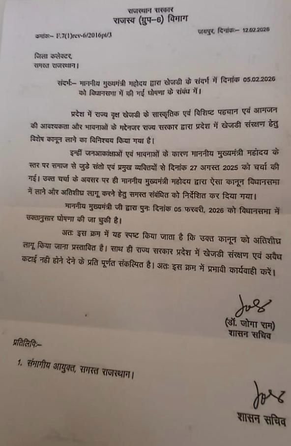 खेजड़ी संरक्षण के लिए अधिकारी करे प्रभावी कार्रवाई