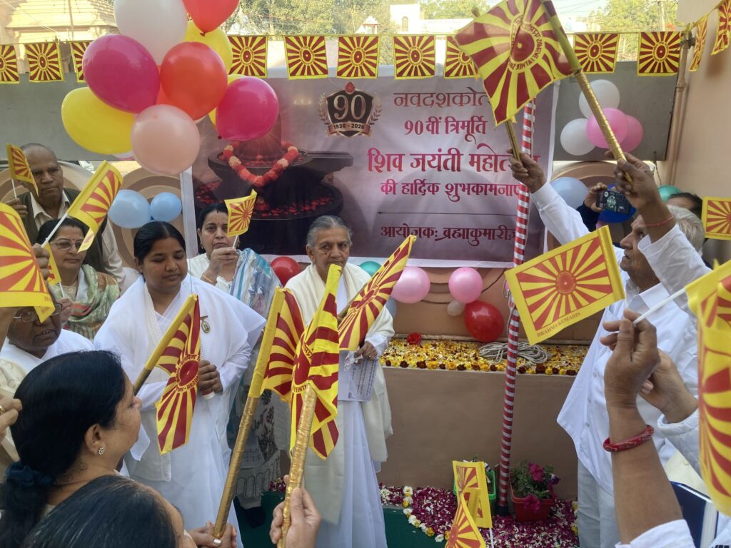 बीकानेर। प्रजापिता ब्रह्माकुमारी ईश्वरीय विश्व विद्यालय के क्षेत्रीय सार्दुलगंज में रविवार को महाशिवरात्रि पर्व आध्यात्मिक उत्सव के रूप में मनाया गया। क्षेत्रीय प्रभारी राजयोगिनी बी.के. कमल के साथ गणमान्य लोगों शिव ध्वज फहराकर परमात्मा शिव के आदर्शों का स्मरण करते हुए वंदन किया।