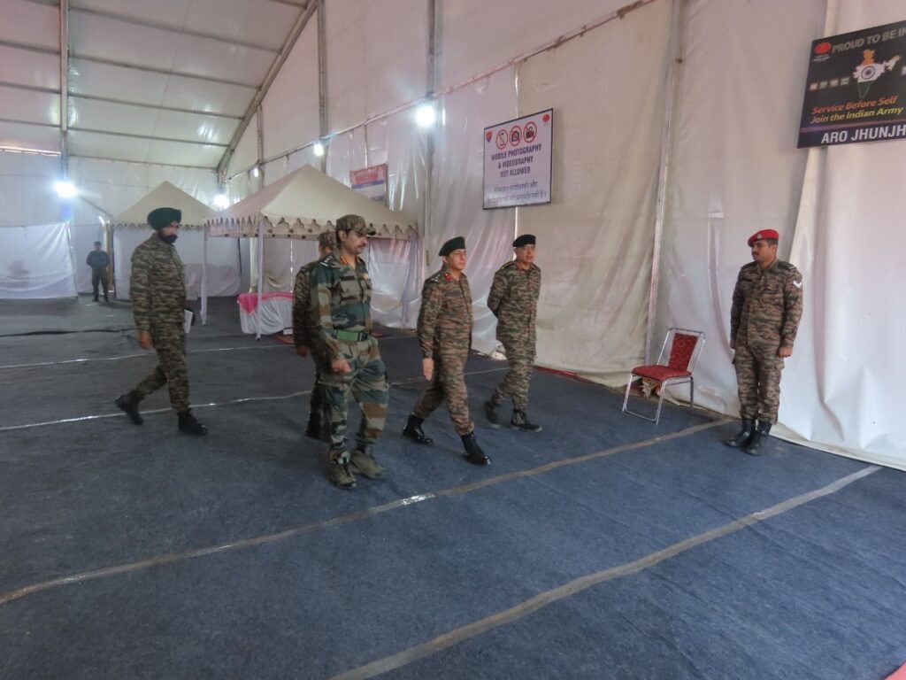 सेना भर्ती इंचार्ज कर्नल कुमार ने बताया कि इस अवसर पर ब्रिगेडियर उपेंद्र कौशल ने भर्ती स्थल का विशेष निरीक्षण किया। उन्होंने विशेष रूप से मेडिकल परीक्षण क्षेत्र का विस्तृत अवलोकन कर व्यवस्थाओं की सराहना की तथा यह सुनिश्चित किया कि प्रत्येक अभ्यर्थी की चिकित्सीय जांच निष्पक्ष, व्यवस्थित एवं पारदर्शी ढंग से की जा रही है। निरीक्षण के दौरान उन्होंने अधिकारियों एवं स्टाफ से संवाद कर प्रक्रियाओं की जानकारी प्राप्त की तथा व्यवस्थाओं को और अधिक प्रभावी बनाने हेतु आवश्यक निर्देश दिए। उन्होंने अभ्यर्थियों के अनुशासन, उत्साह एवं व्यवस्थाओं के सुचारु संचालन पर संतोष व्यक्त किया।